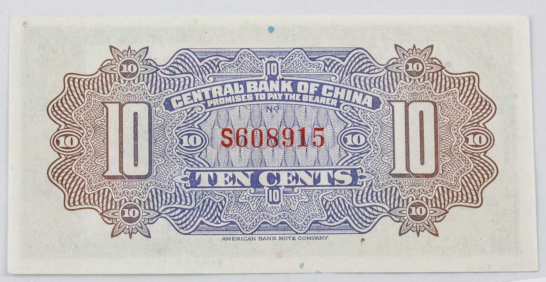 China Republic 10 Cents banknote, Central Bank of China, serial number S608915, 5.8 x 11.5 cm