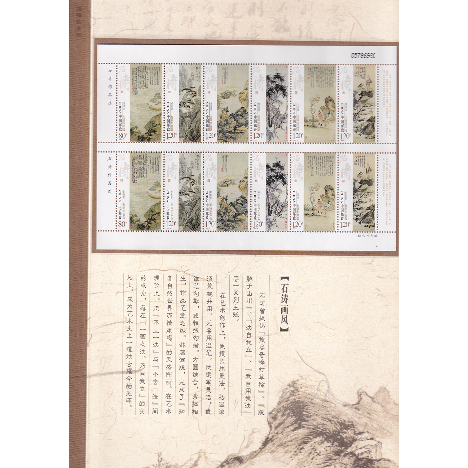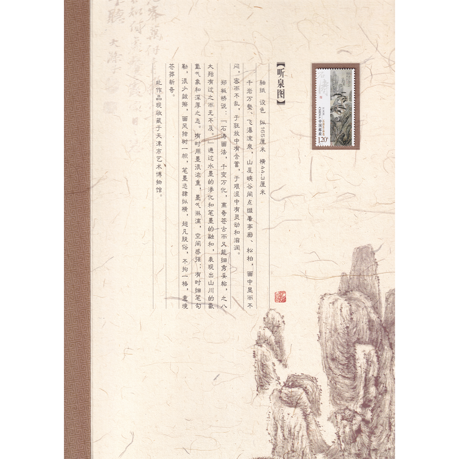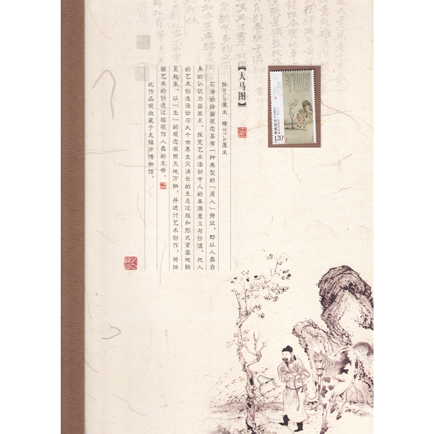 This book features various stamps, as well as beautiful traditional Chinese art by artist Shi Tao on each page.