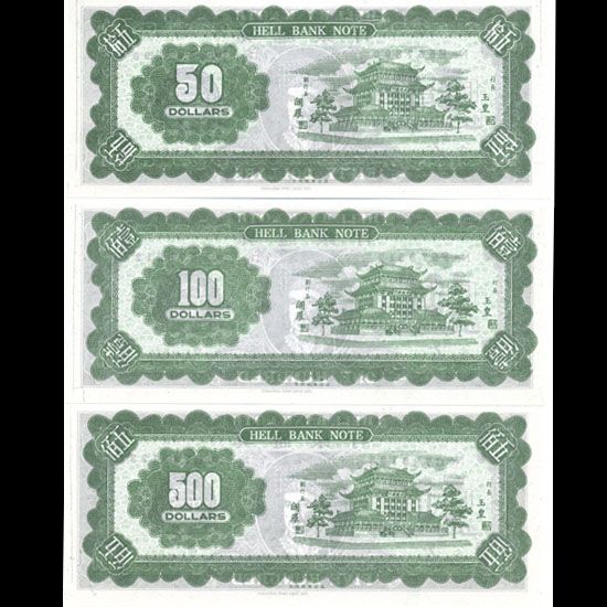Used in Chinese festivities; set of 10: $1; $5; $10; $20; $50; $100; $500; $1000; $5000; $10000; Crisp Uncirculated