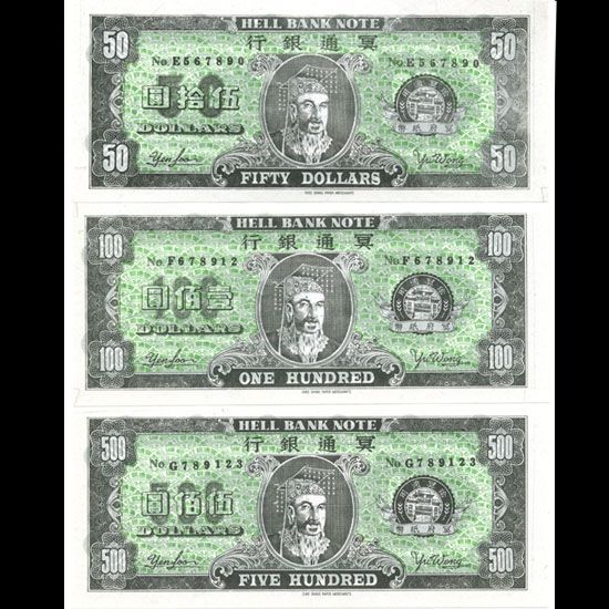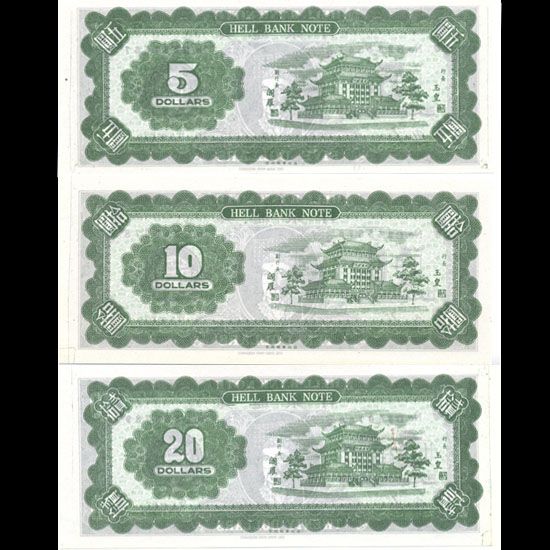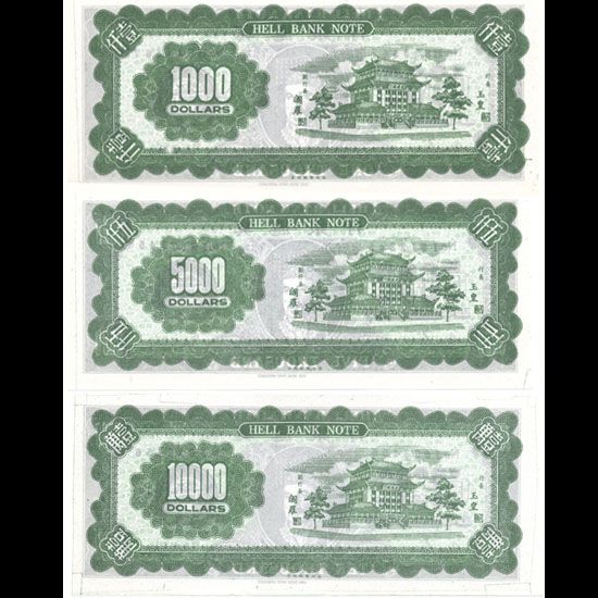 Used in Chinese festivities; set of 10: $1; $5; $10; $20; $50; $100; $500; $1000; $5000; $10000; Crisp Uncirculated