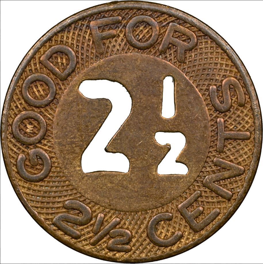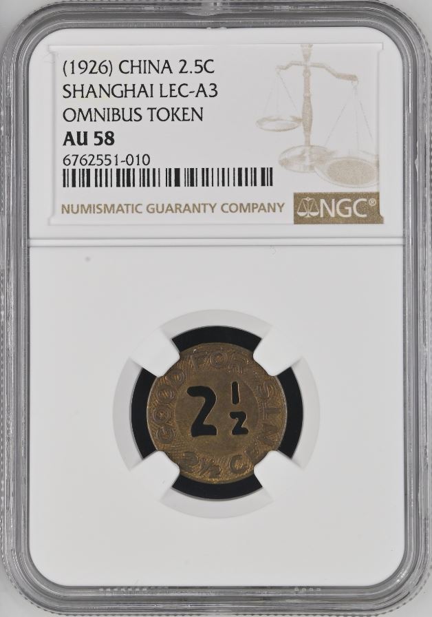 1926, 中國上海2.5仙巴士代幣 (由英商上海中國公共汽車有限公司發行) NGC AU58, 較少年份, 只有一隻更高分