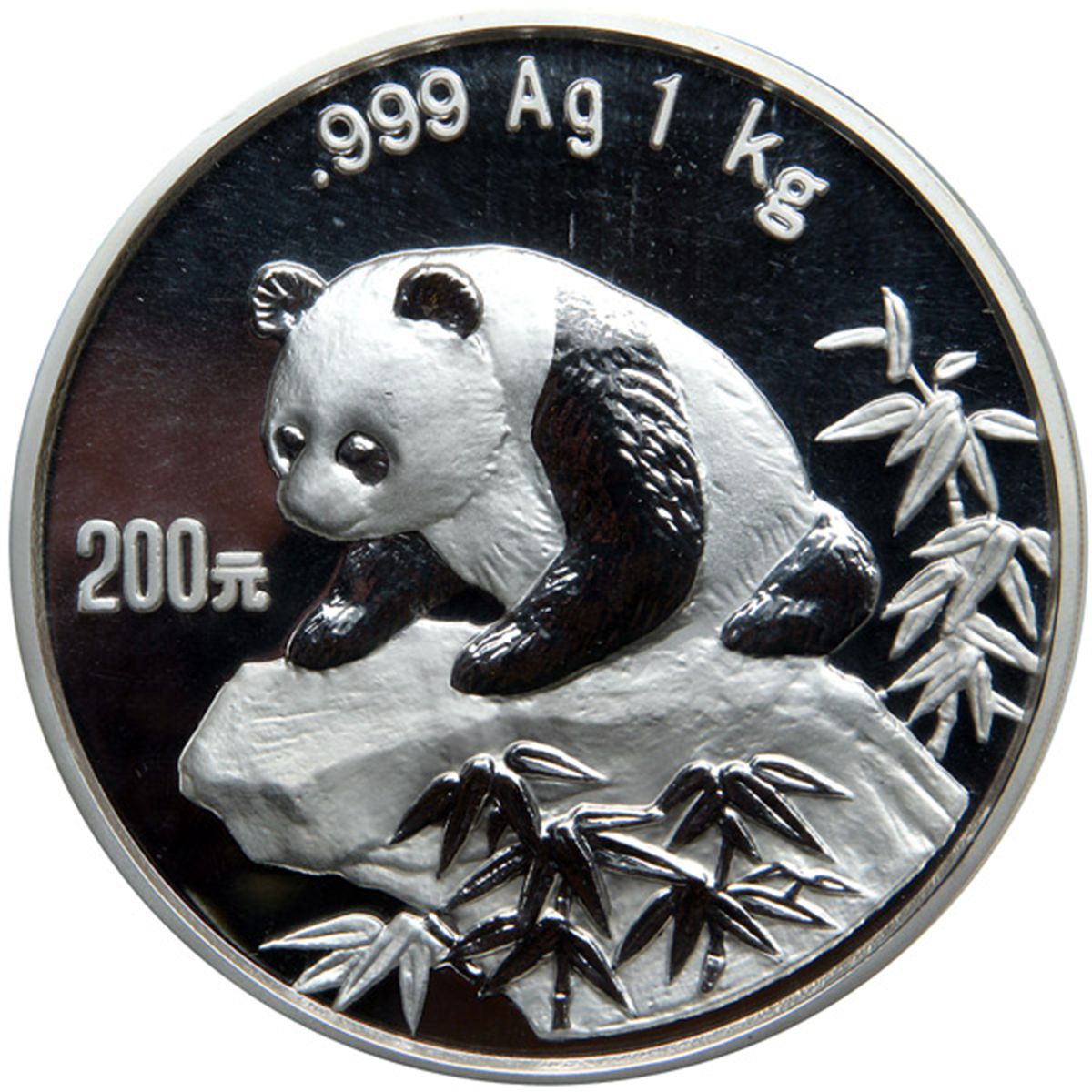 China. Silver Kilo 200 Yuan, 1999. KM-1222. Weight 32.124 ounces. Panda on rock left. In jumbo holder. NGC graded Proof 69 Ultra Cameo.