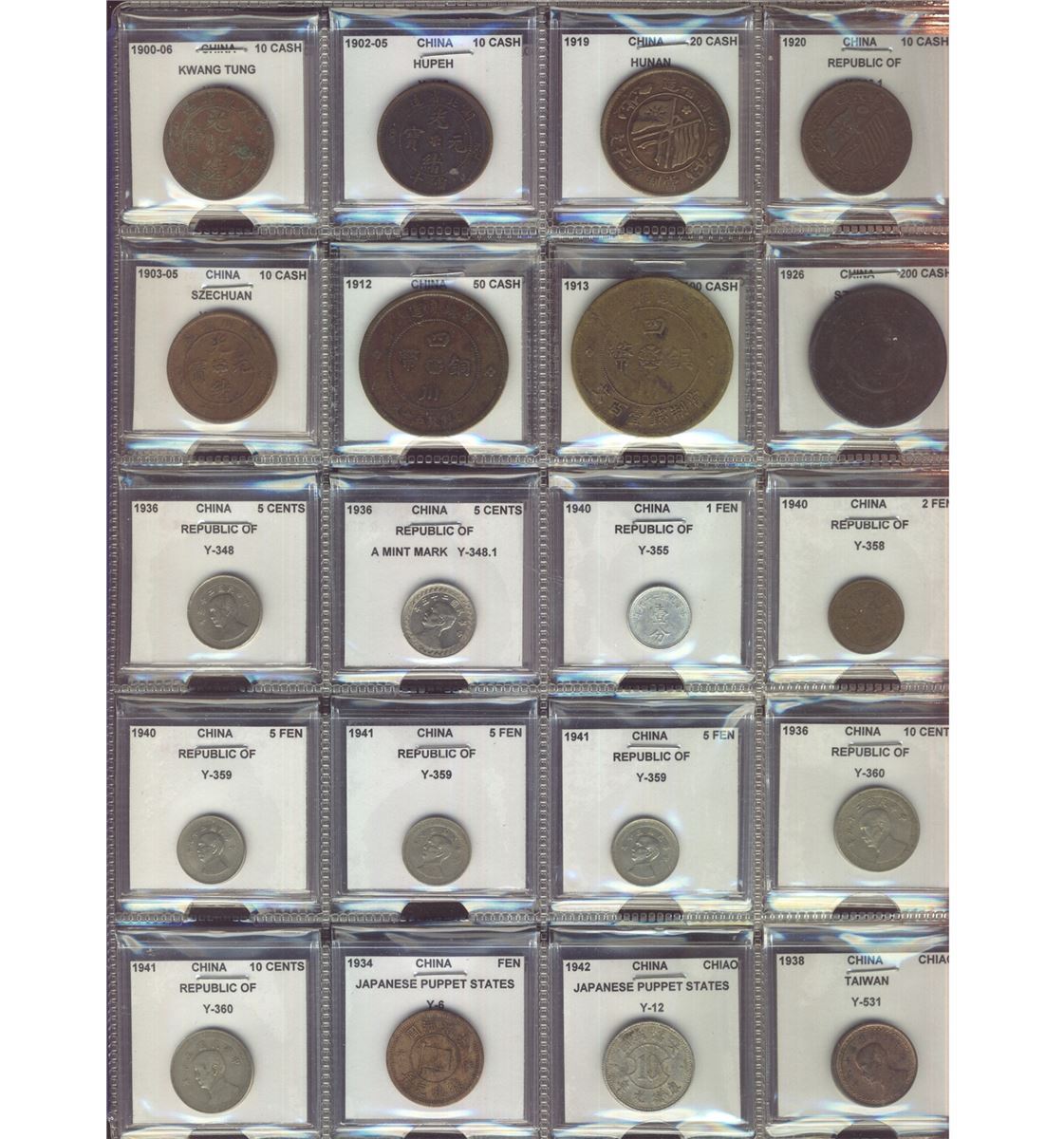 China/Taiwan/Hong kong Miscellaneous Coinage Lot;  includes 19 Chinese pcs.  14 Taiwan pcs ranging from Chiao to 50 Yuan 1938-2002; 7 Hong Kong pcs,  ranging from 10 Cents issues 1891-1936 to 1 Cent 1901-1904. Total 40 Silver, Copper & Nickel items, VF to UNC.