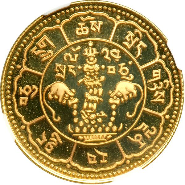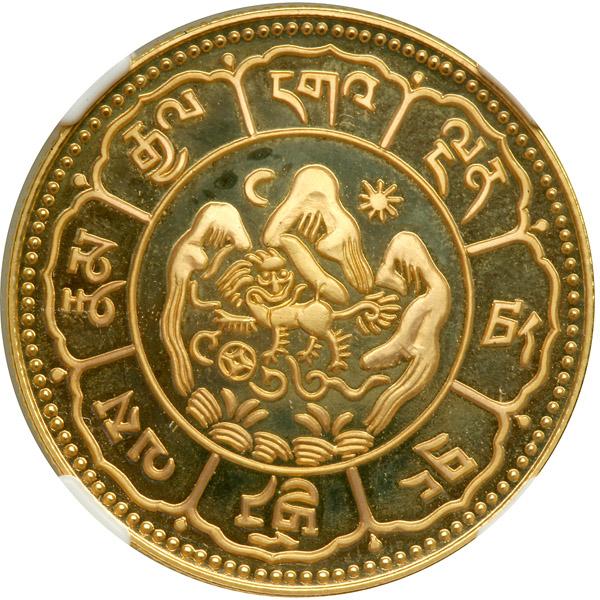 Tibet. 10 Srang, Yr. 1624 (1950). KM-X#6. Weight 0.5000 ounce. Mintage 500. Lion standing left, mountain behind. NGC graded Proof 68 Ultra Cameo.