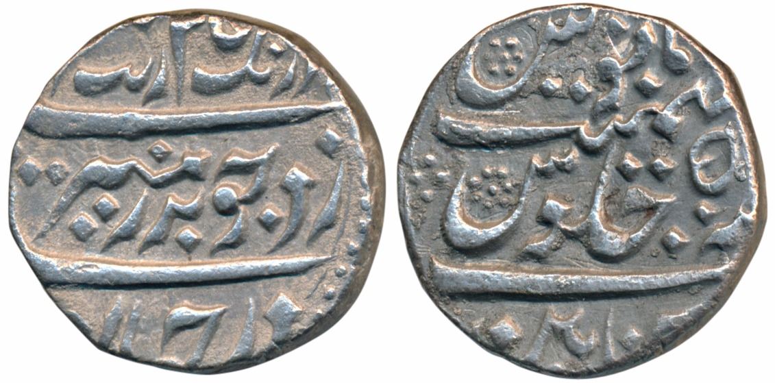 Chinapattan Mint, Silver Rupee, 11.33g, in the name of Aurangzeb, RY 50 (KM A289). Very Fine+.