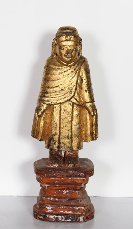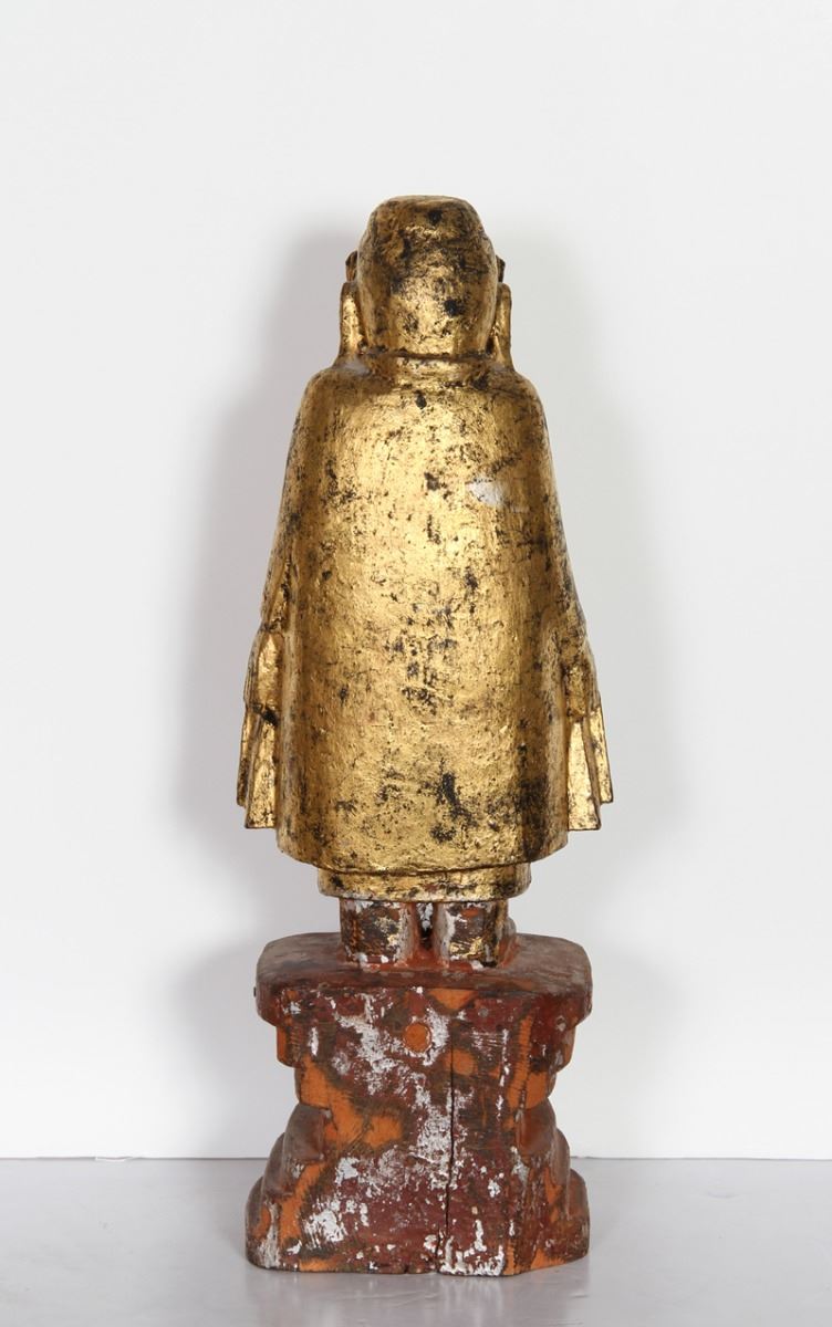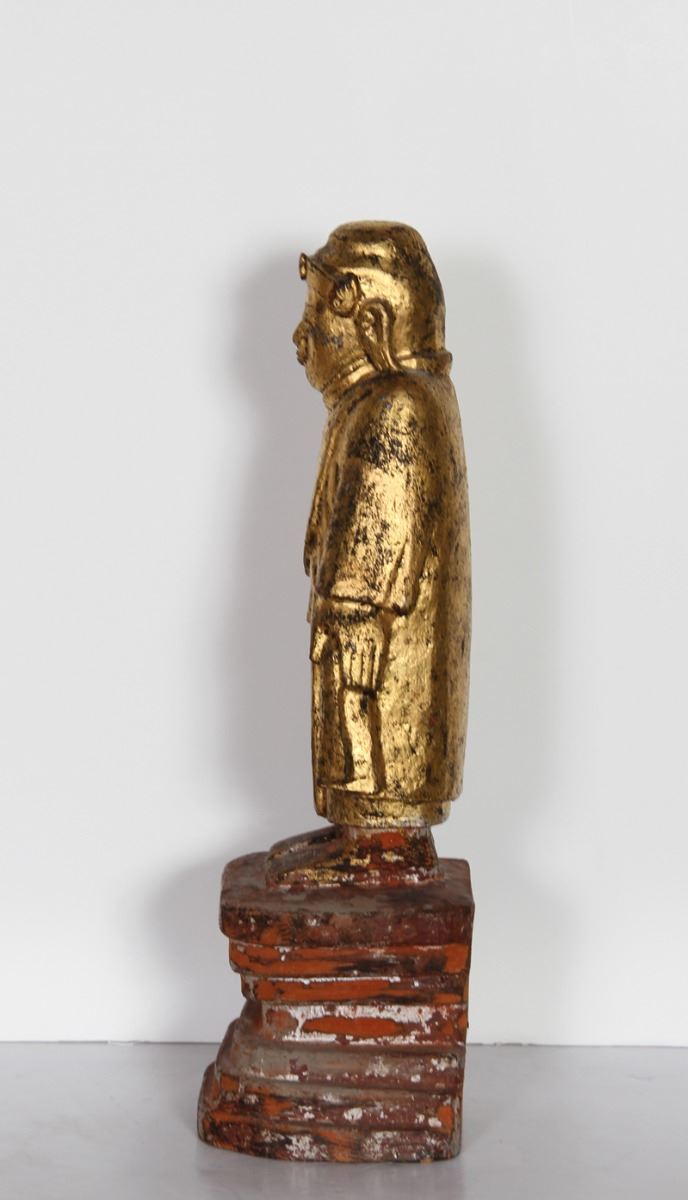 Chines Figure I, Hand-Carved and Painted Wood Sculpture