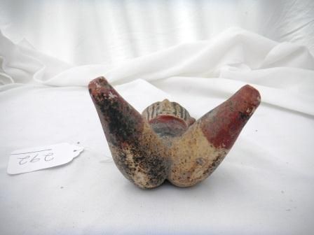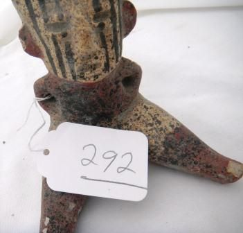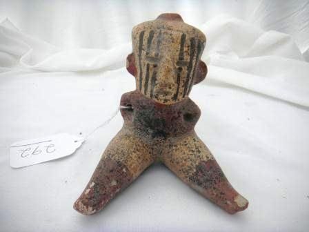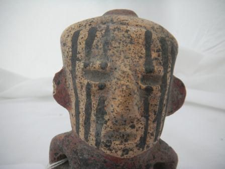 Chinesco Style Precolumbian Figure, measuring 5 by 4 by 5 inches. Condition multiple chips. Shipping $18.00