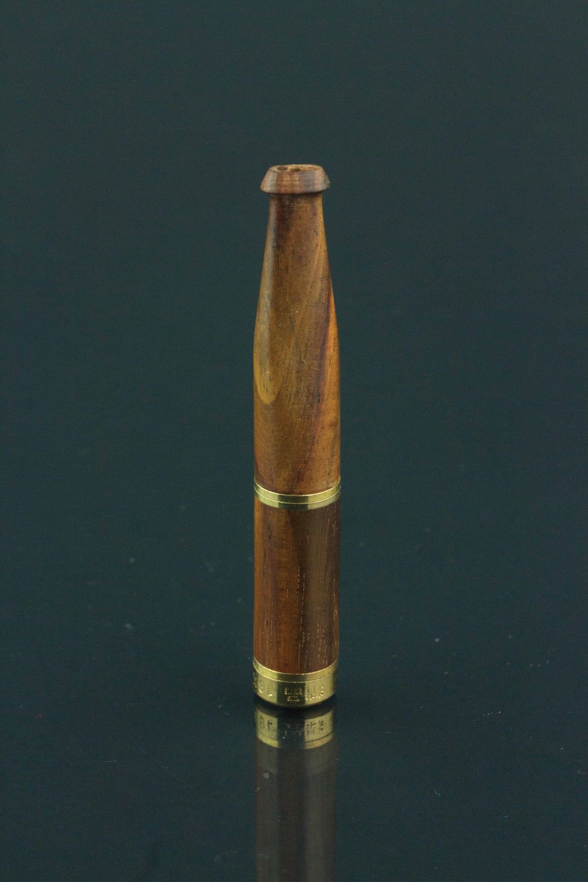 Chinese wood pipe with 18K marked mouth, tenon and mortise; L: 8.5 cm, 16 grams