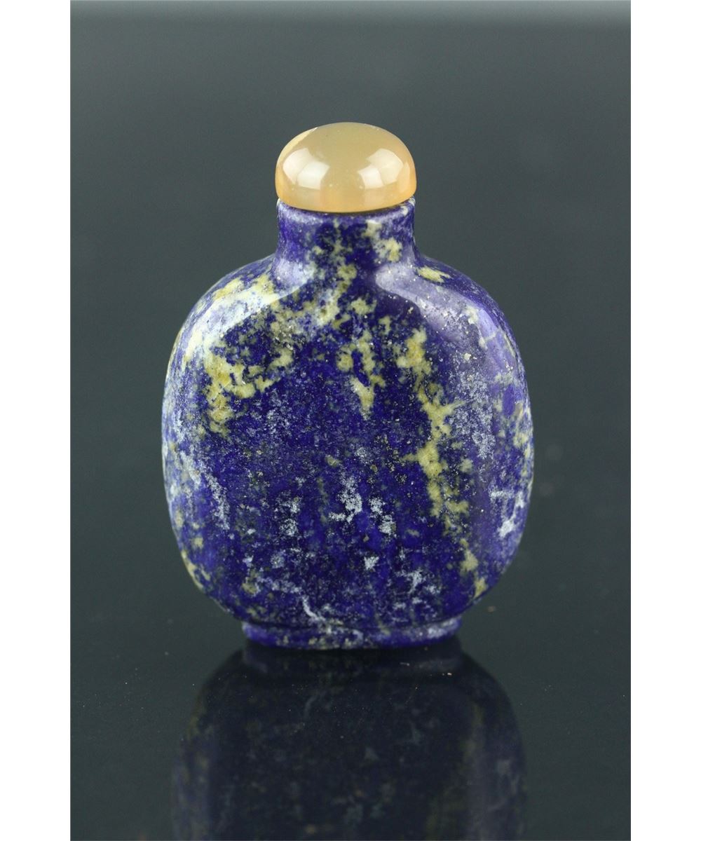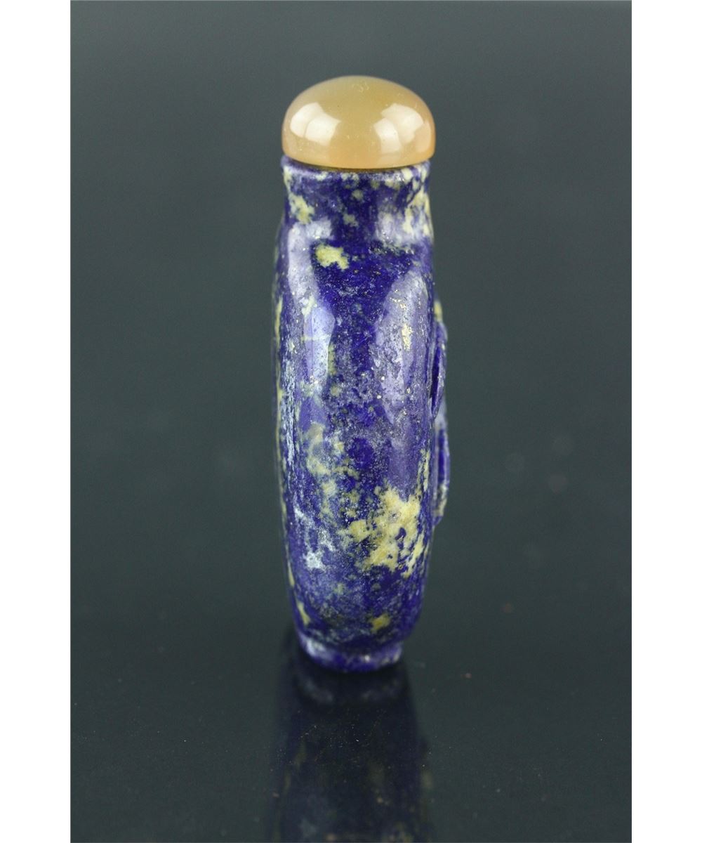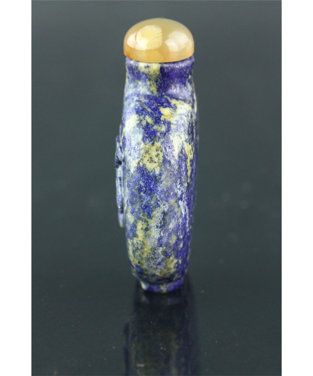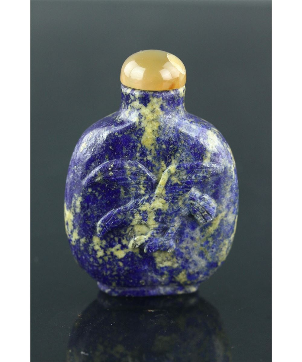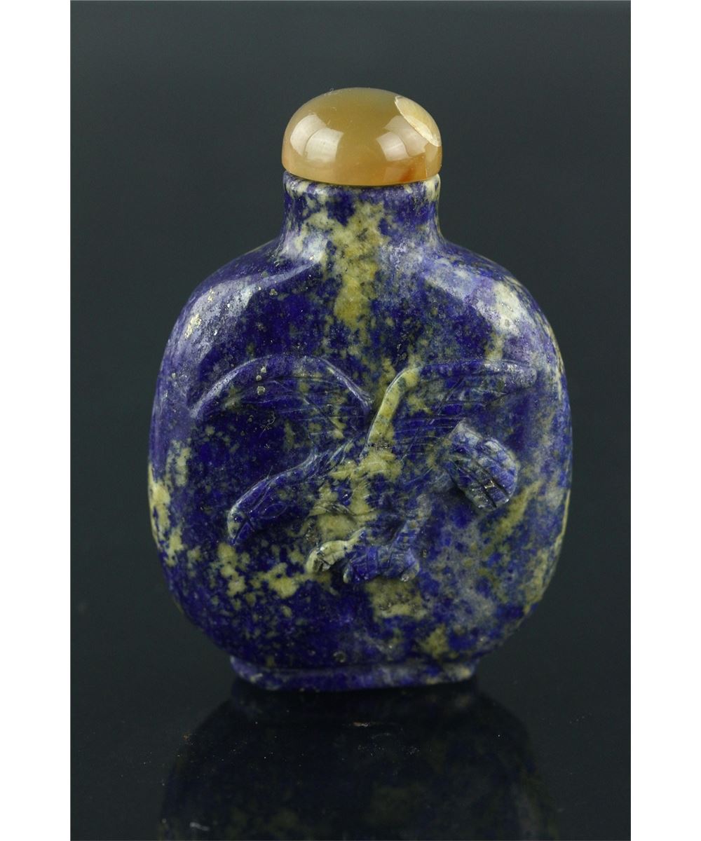 Chinese lapis lazuli snuff bottle; 19th century; of oval form; with carvings of eagle in low relief; H: 6 cm, W: 5 cm, 60 grams