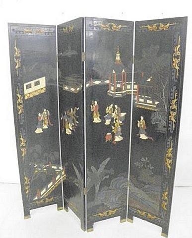 With "Birds & Figures" on each panel. Approx. 15.75" x 6' H. Good condition.