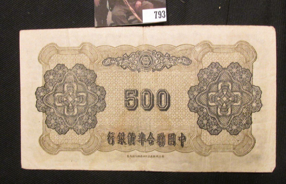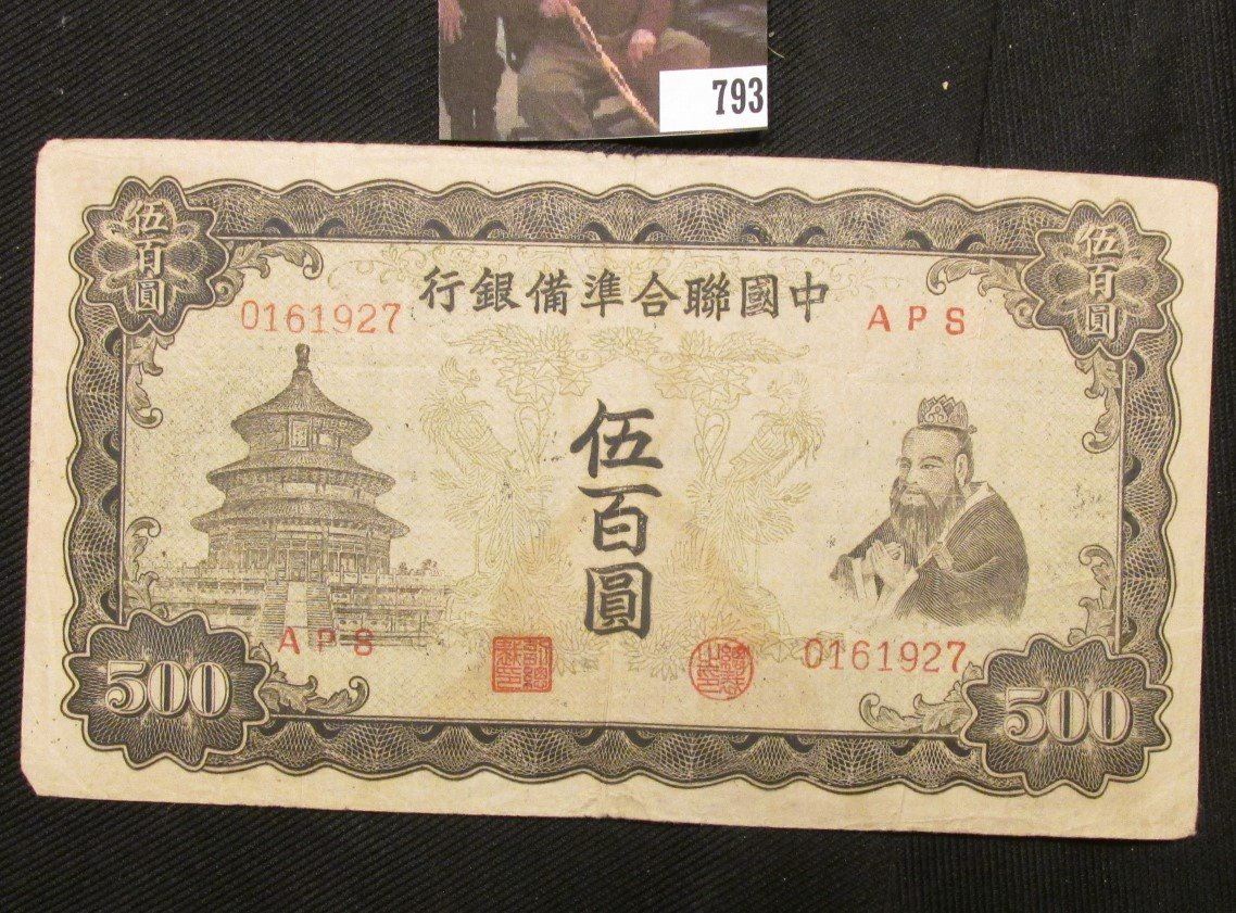Chinese 500 Cash Bank note with royalty seated right and temple to left. 'Doc' had it labeled S84 and valued at $40