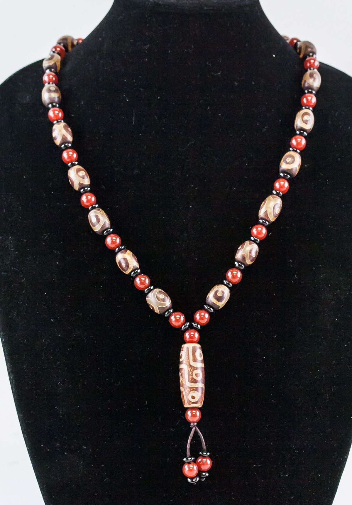 Chinese agate and Tianzhu bead necklace. Of various shape beads. Diameter: 23 cm, 113 grams