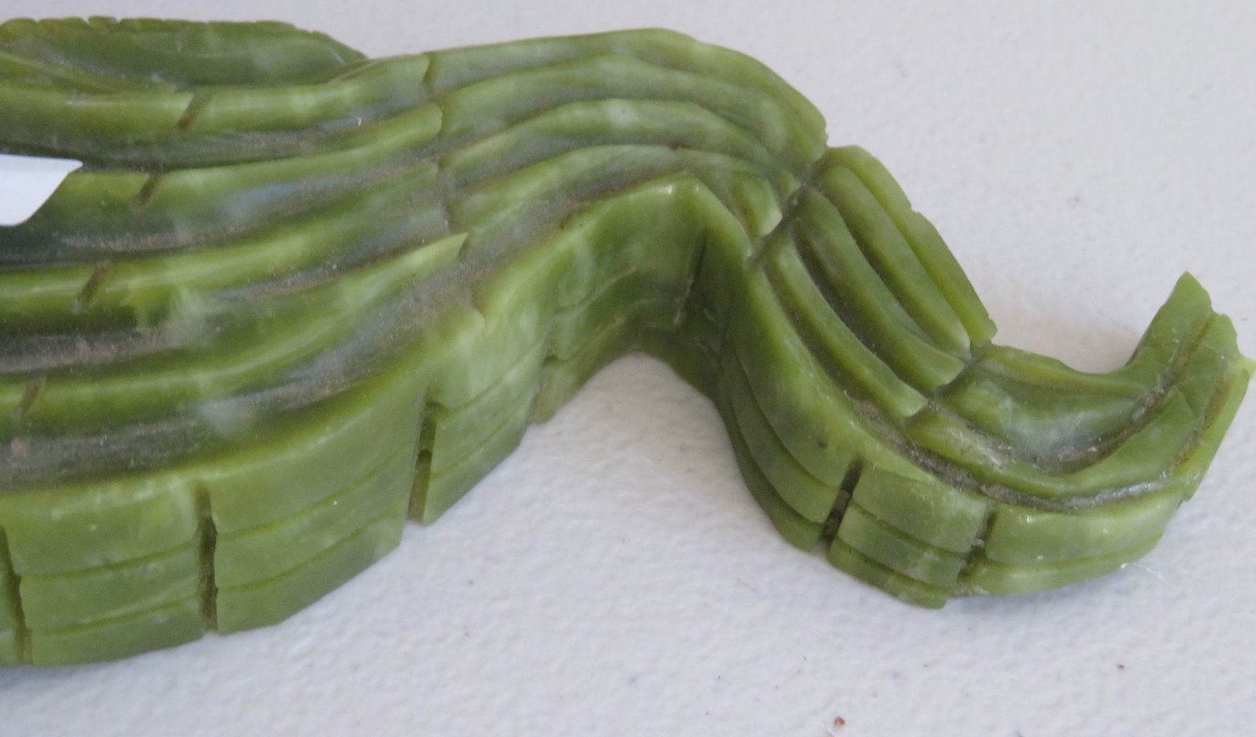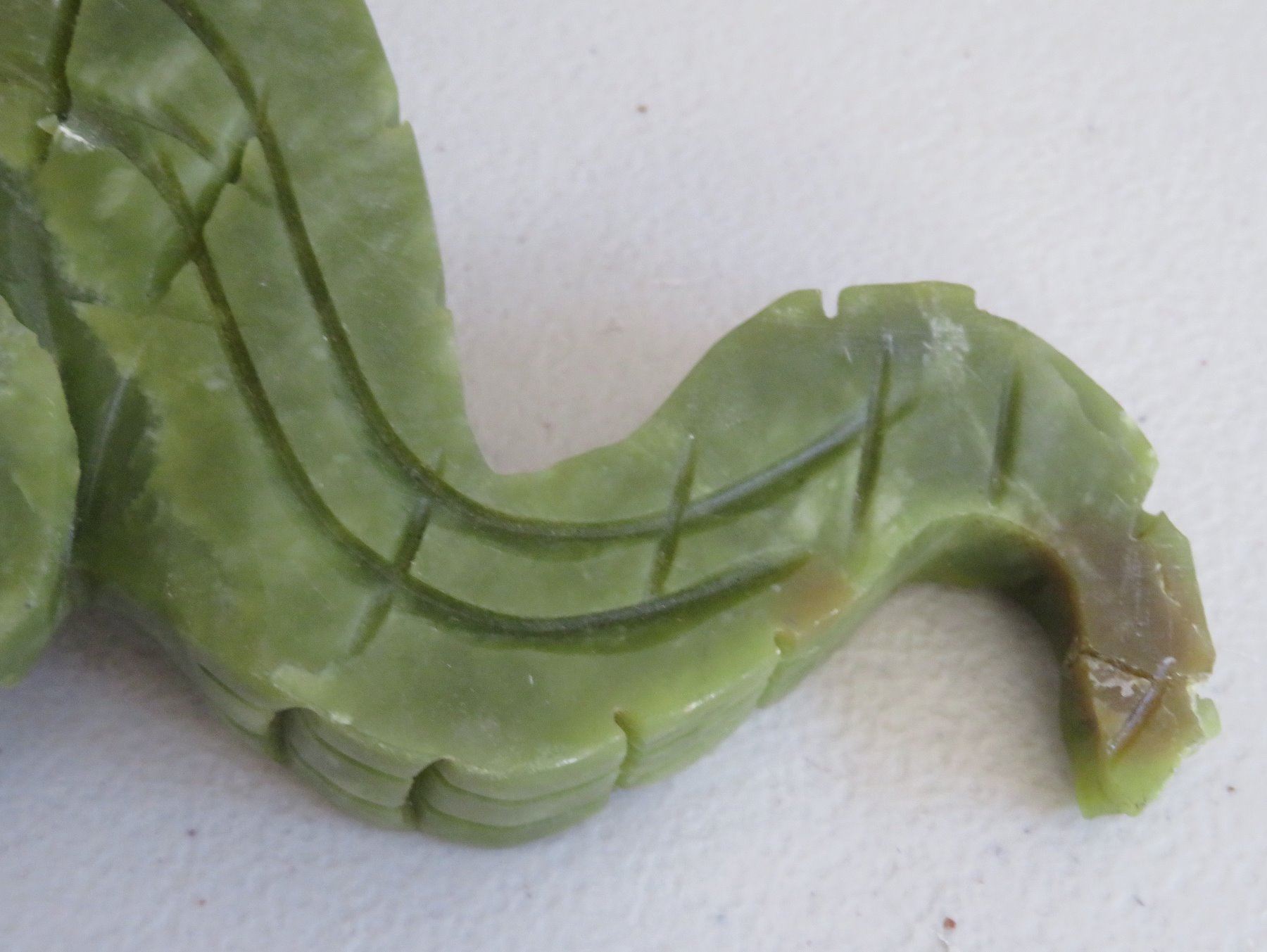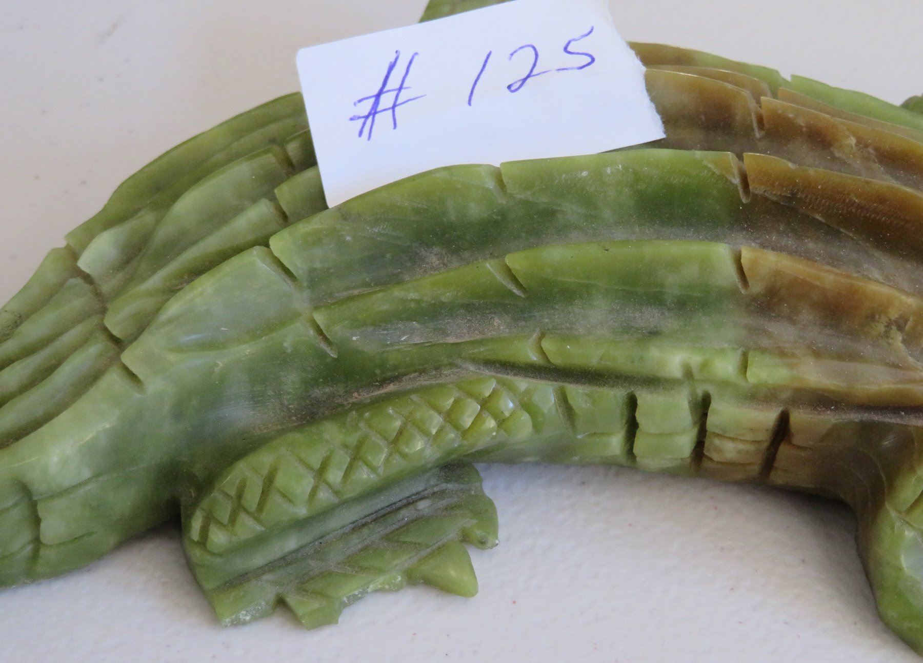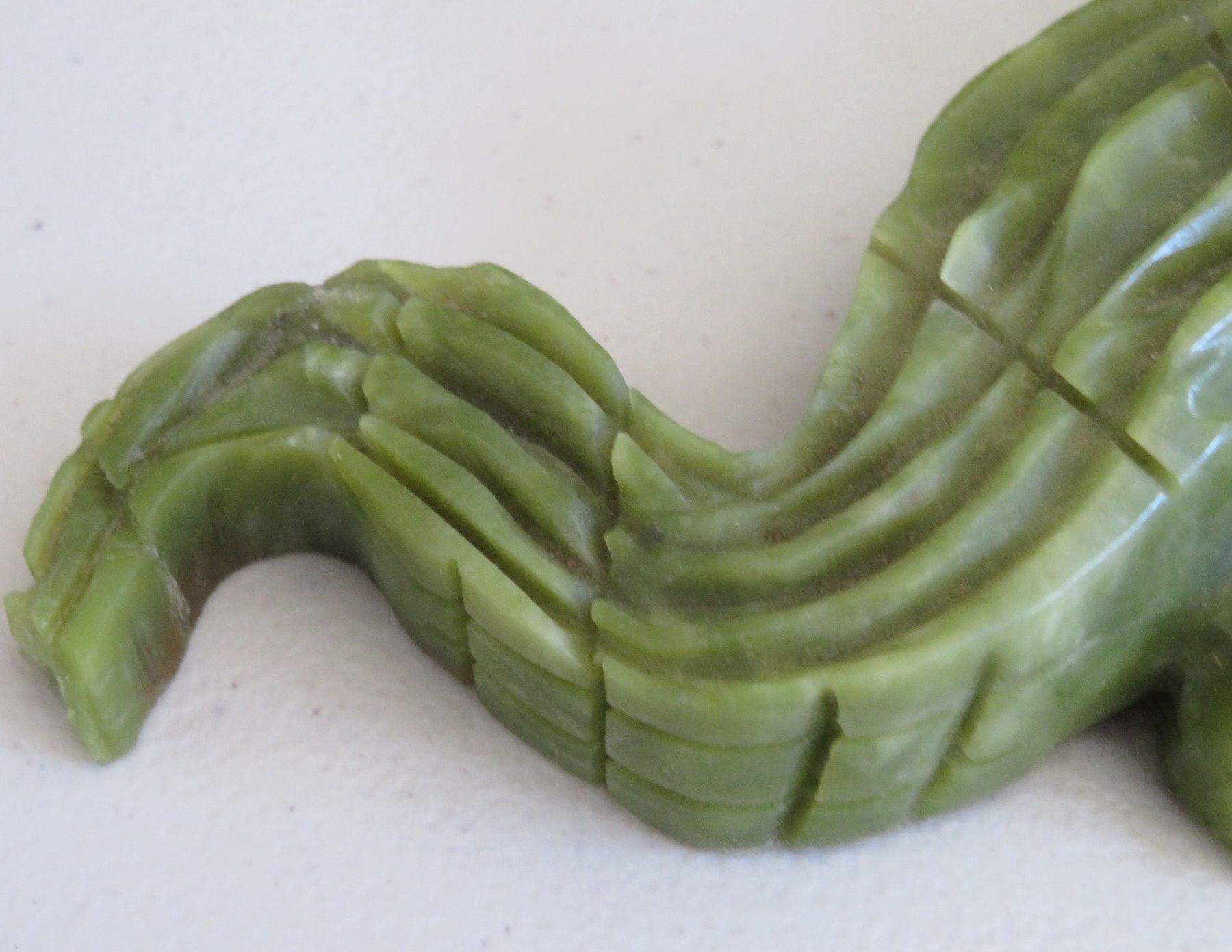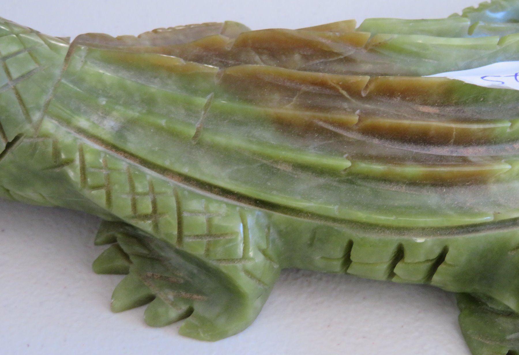 Chinese Alligator Carving, Ming dynasty. Made of serpentine, the item measures 13" x 4" x 2". China. Ex-Heritage of the Americas Museum. Condition: Nick on tail and foot, see images. Shipping: $30.00 w/insurance and signature, double-boxed, due to size.