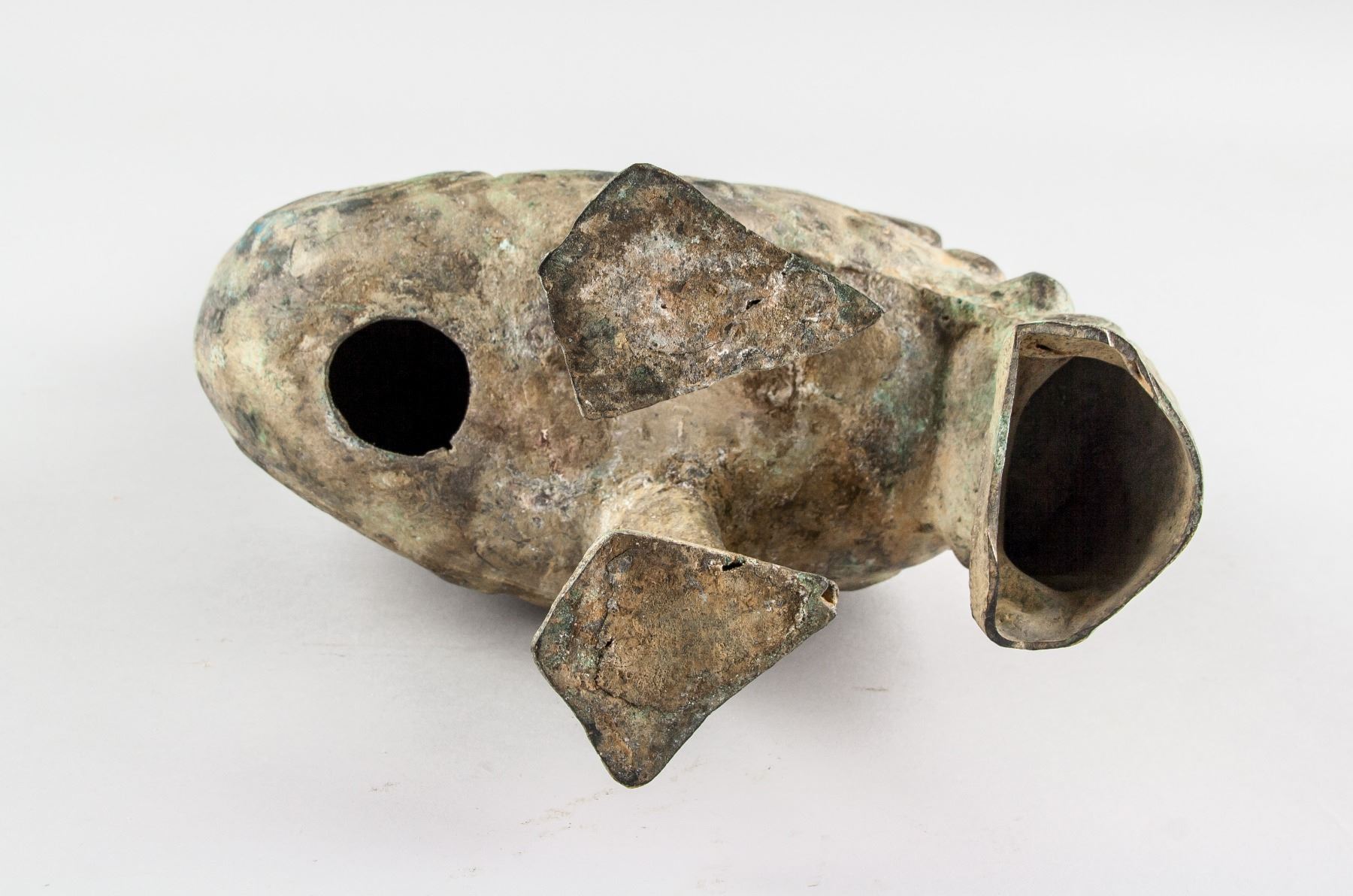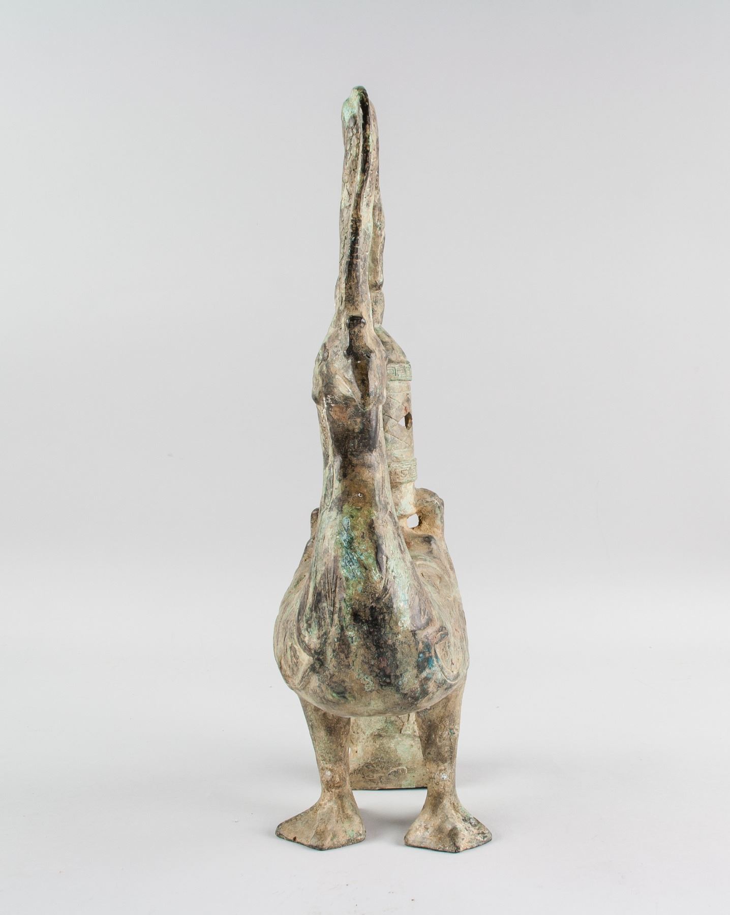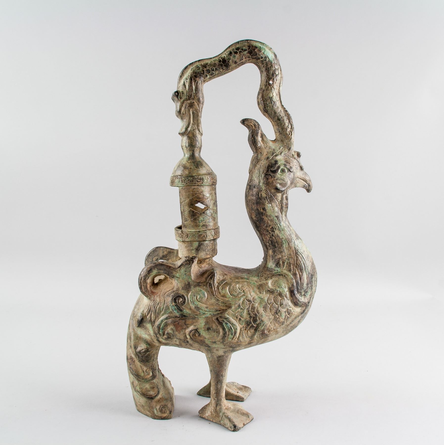 Chinese bronze lamp, of standing phoenix form, with lamp on back hold by a snake, 40 x 21 cm, 2430 gram