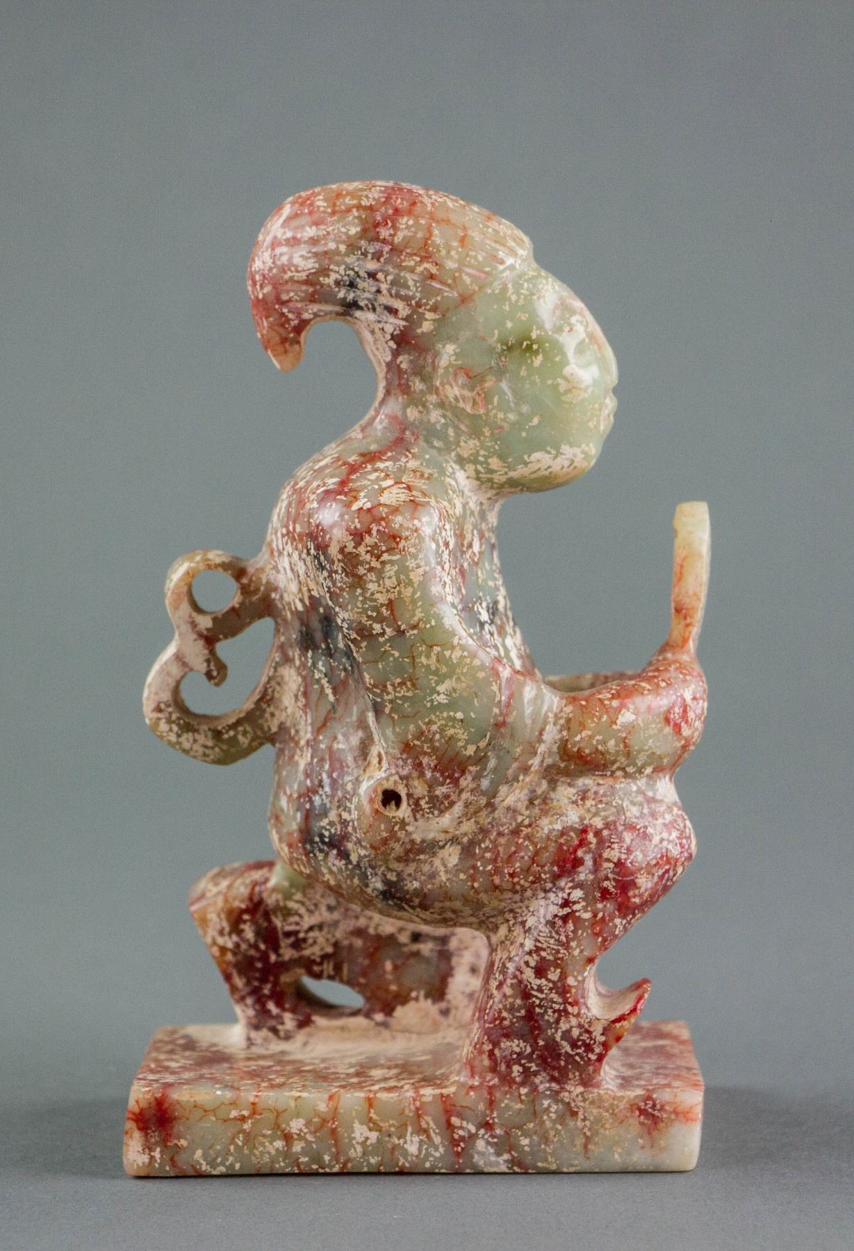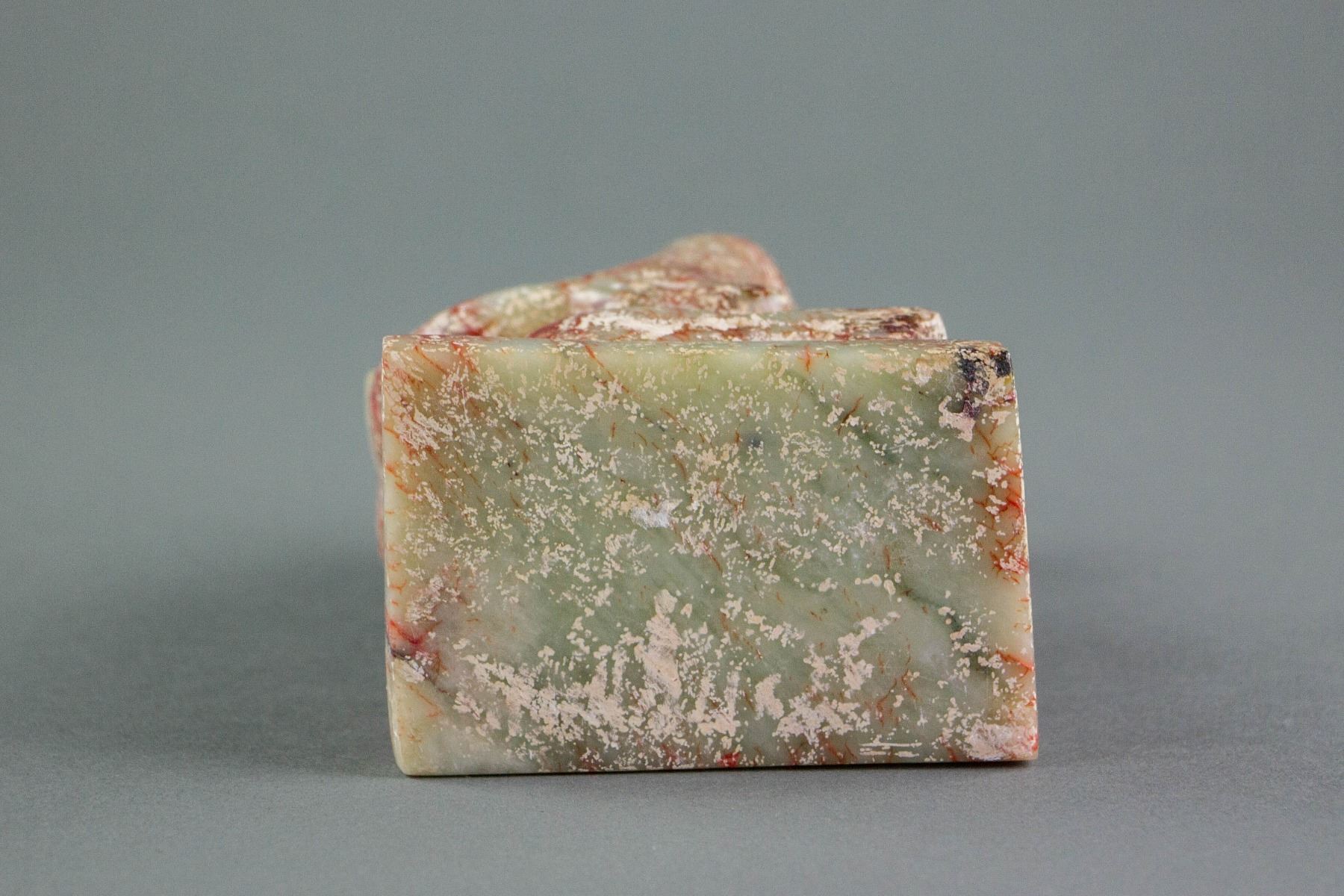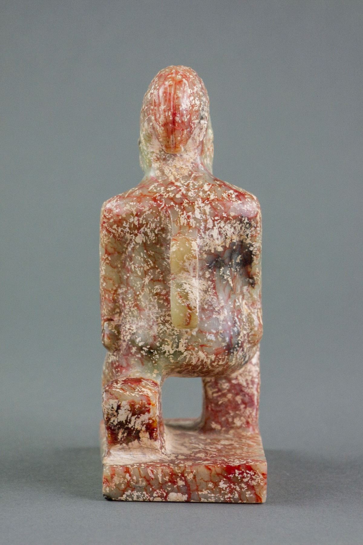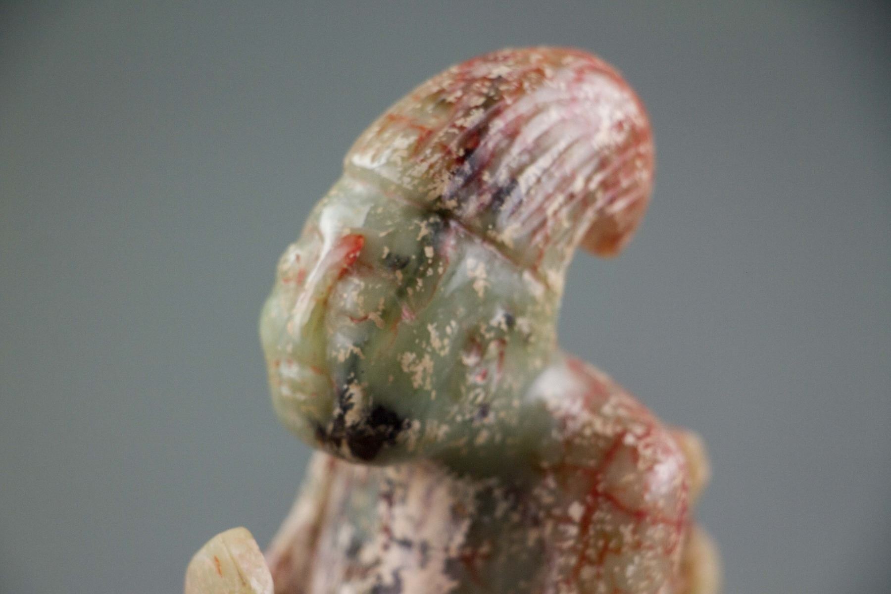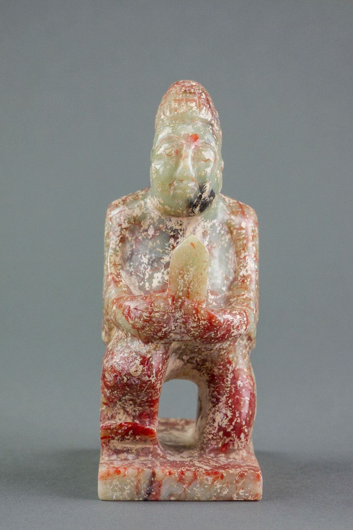 Chinese archaistic two-colour jade carved statue; depicting a kneeled officer holding a Hu (ritual baton); 15 cm x 6 cm, 754 grams