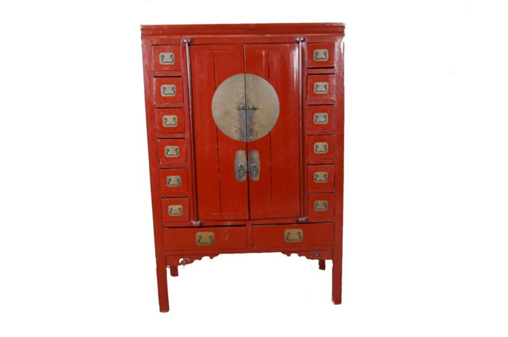 Chinese Armoire Red lacquer, in the style of Tyne Dynasty, made from Jumu/Elm, used for storing clot
