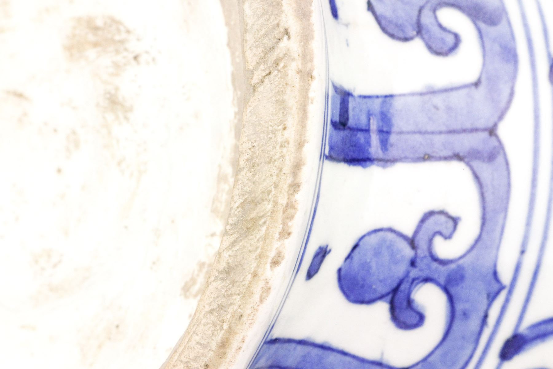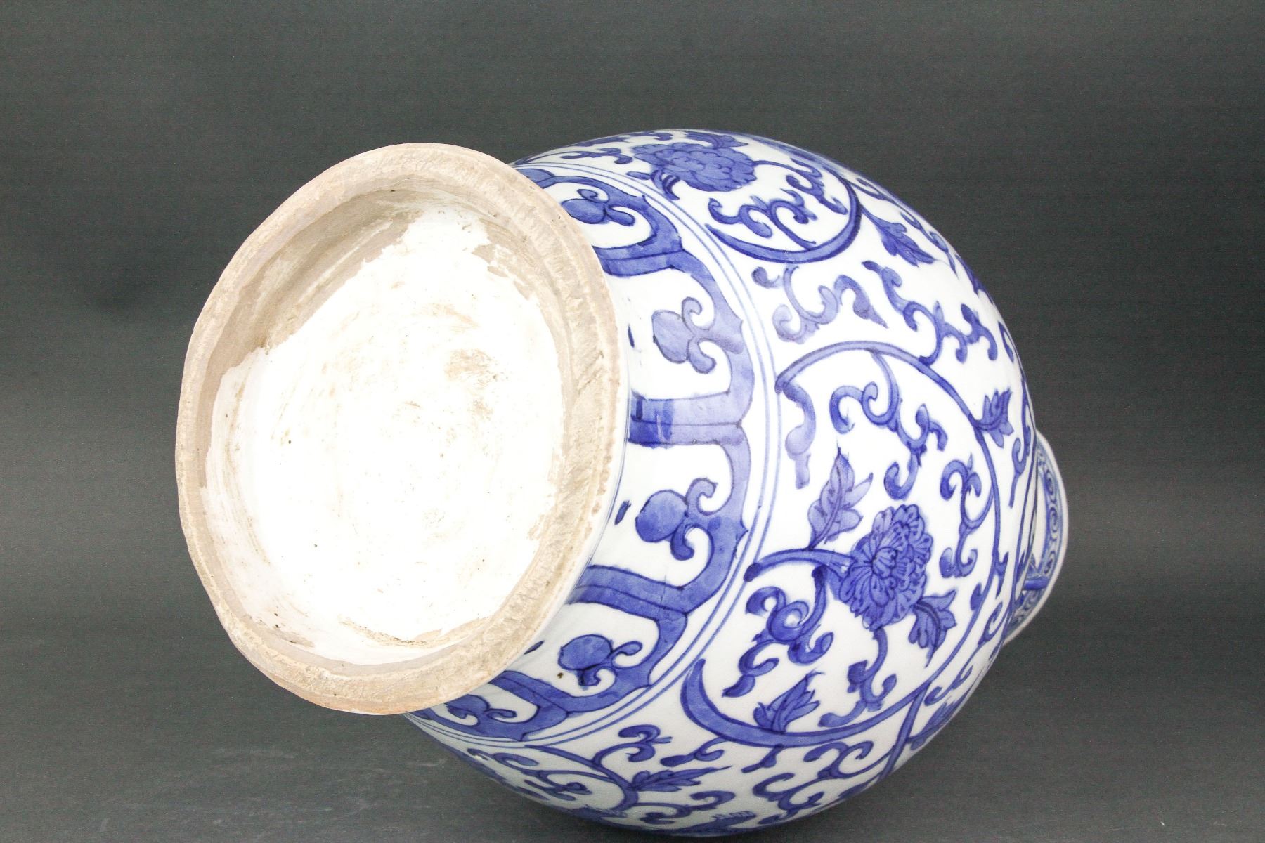 Chinese blue and white porcelain vase; of ovoid body with splayed mouth rim and foot rim; flanked by double Chilong handles; featuring Qilin and peony scrollwork on body; six-character Ming Wanli mark on mouth rim; H: 37 cm, D: 22 cm, 3,742 grams