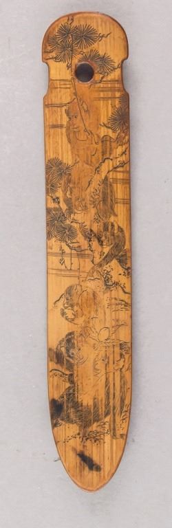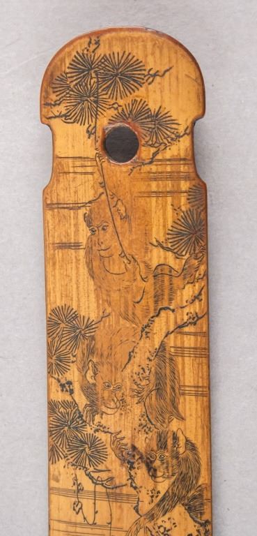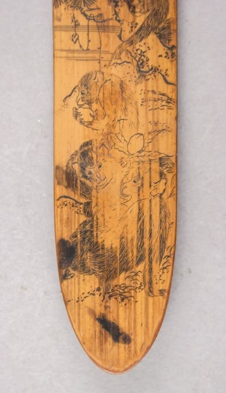 Chinese watercolor on bamboo. Featuring monkeys in trees. 4 x 18 cm. 19 grams.