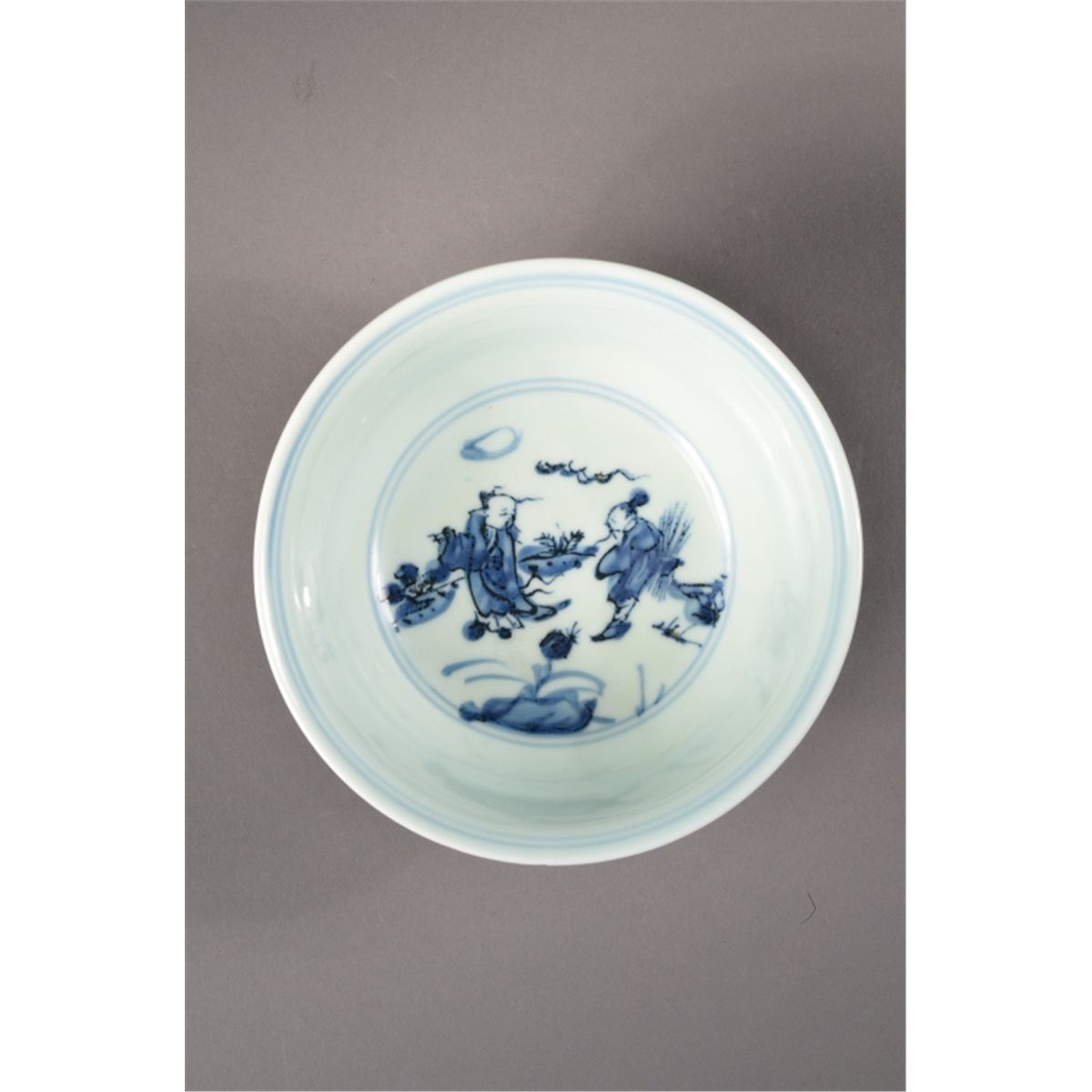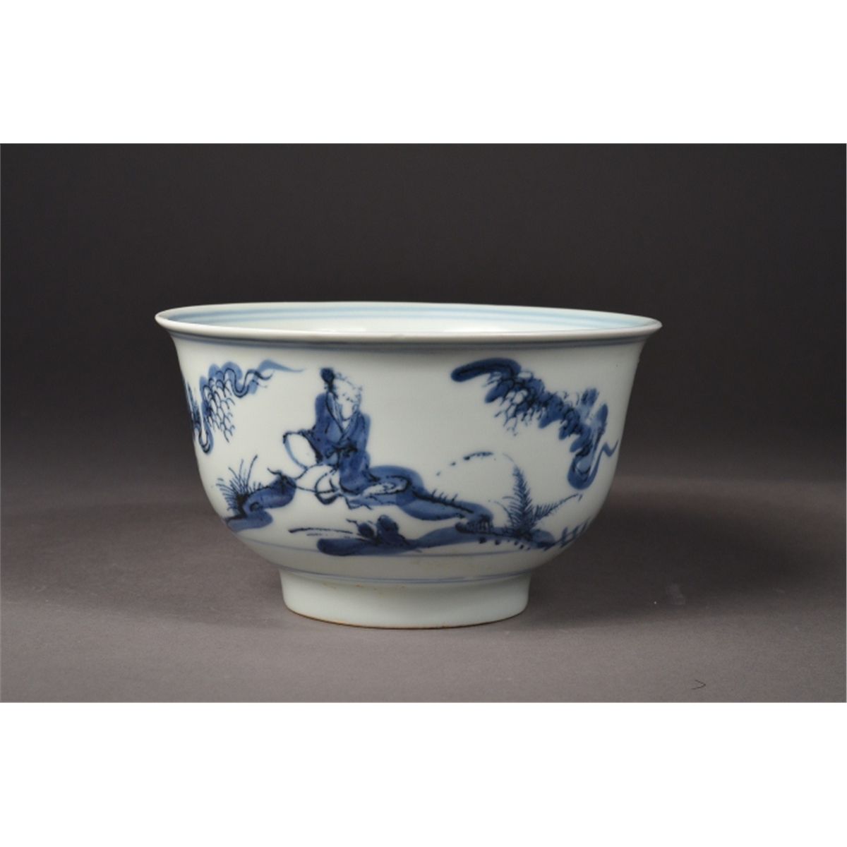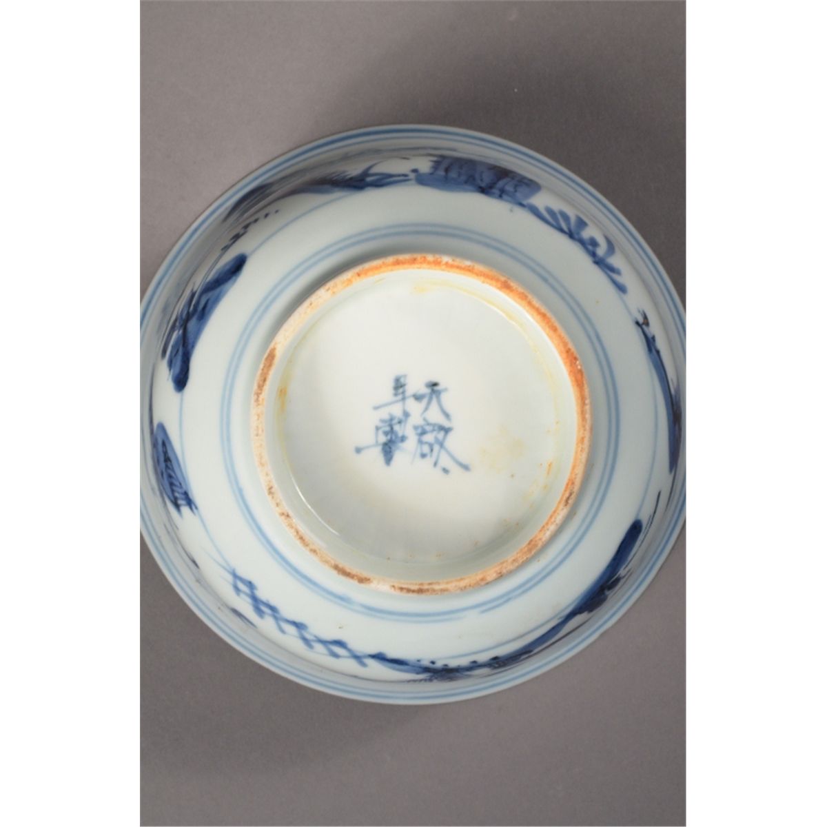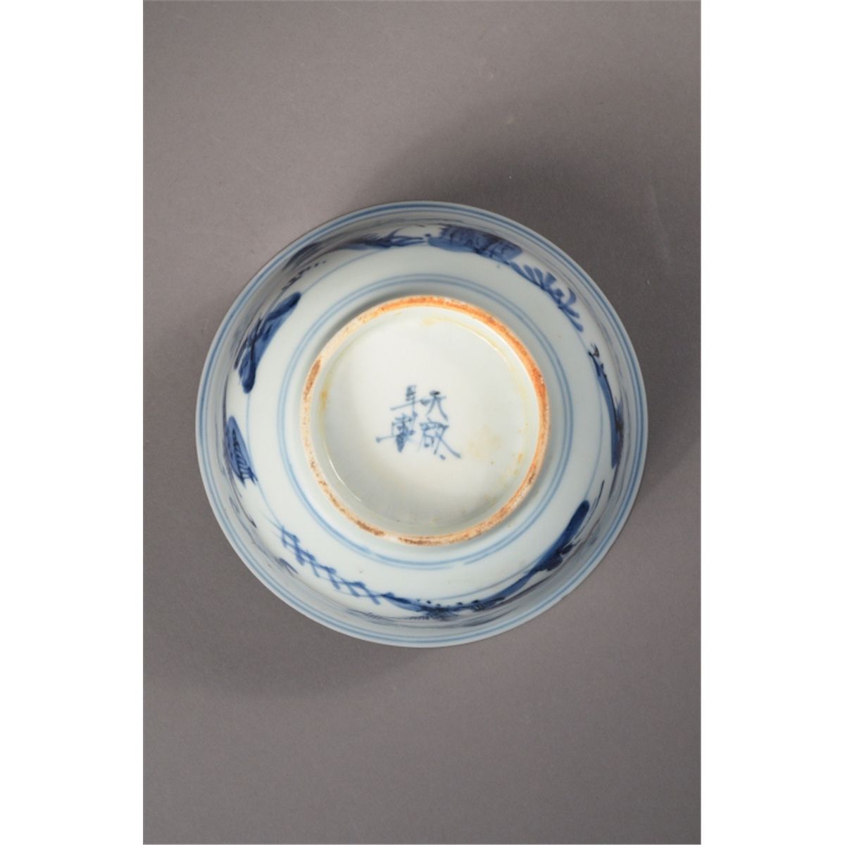 Chinese blue and white porcelain bowl; slightly flared rim and short foot rim; four-character Ming Mark; 5" diameter, 3" tall