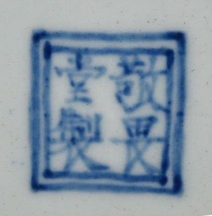 Chinese blue and white porcelain jar, with cover and elephant handles suspending loose rings; H: 30 cm, D: 18 cm
