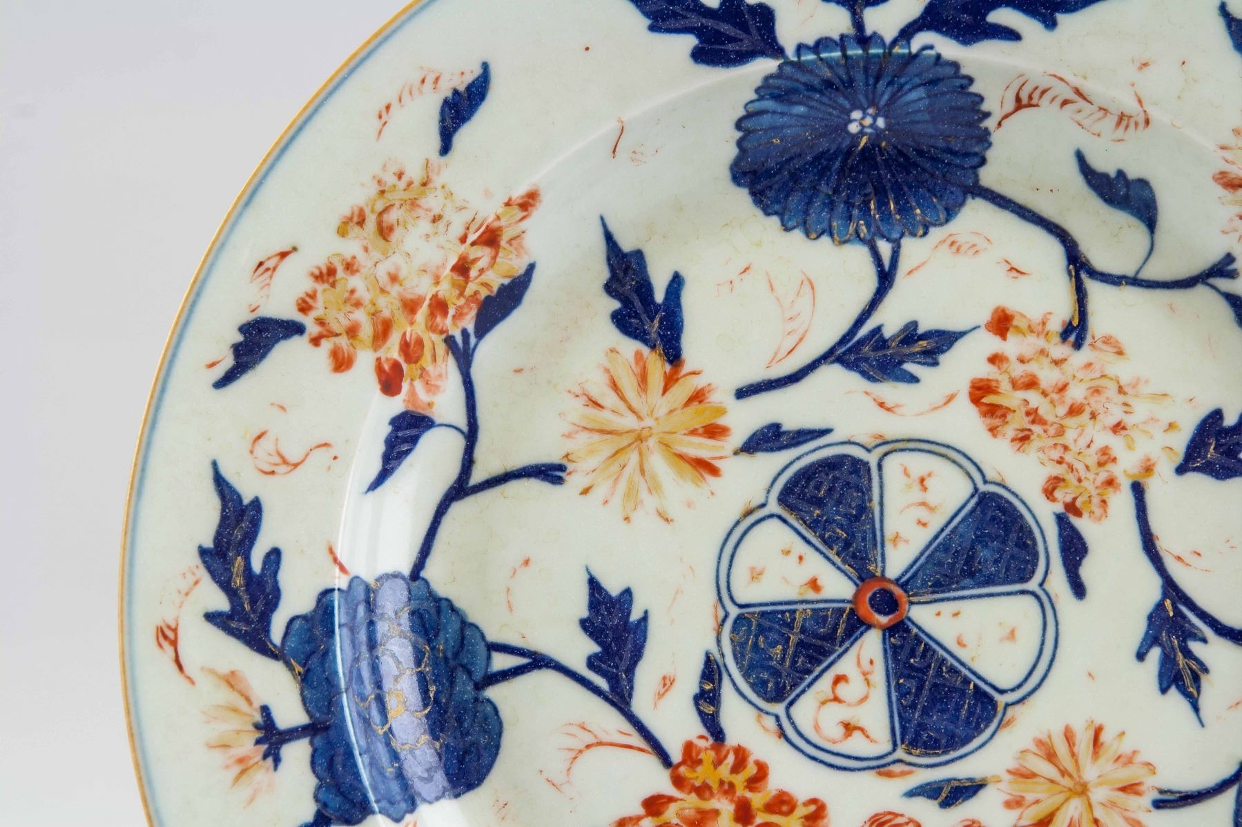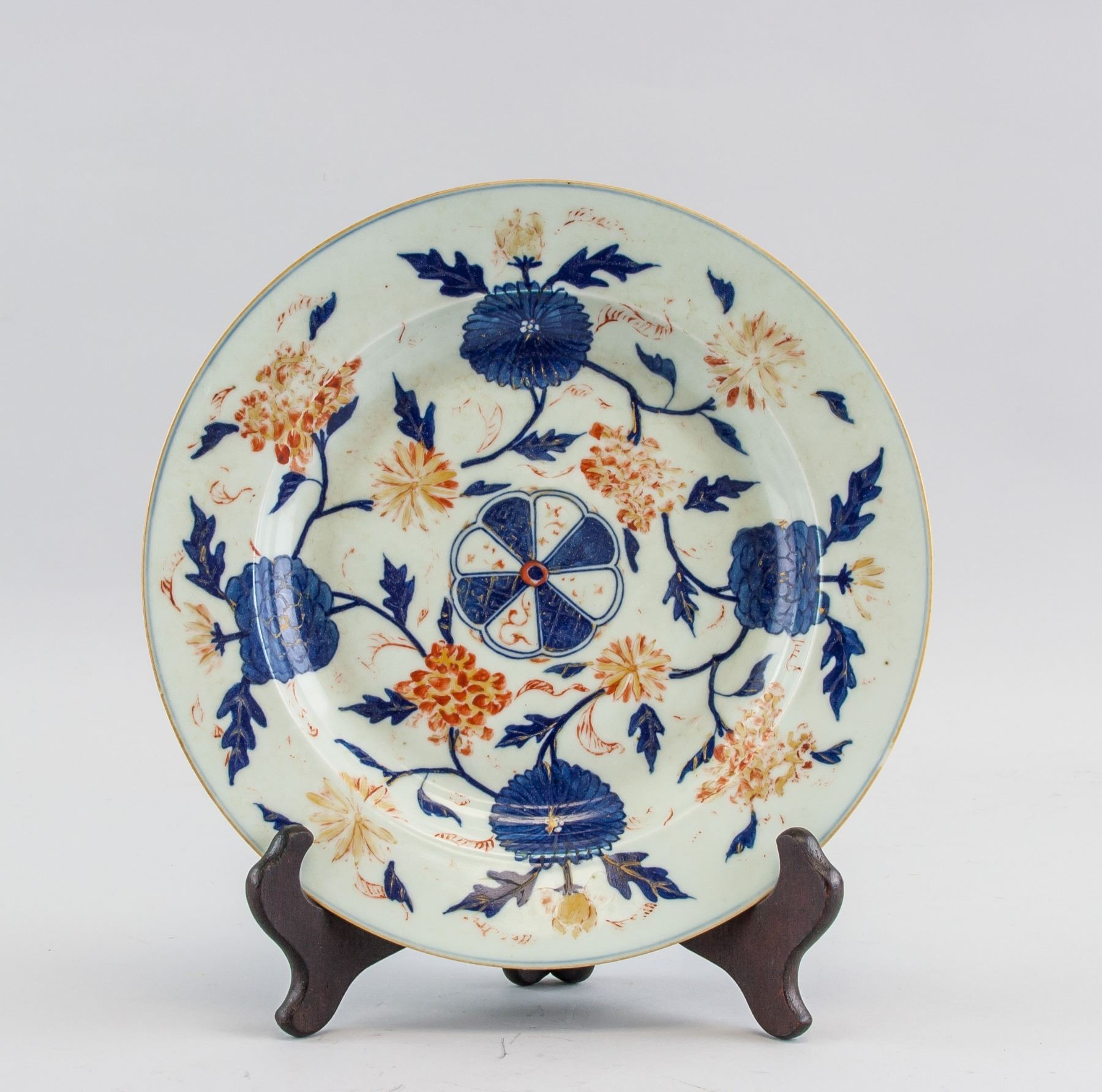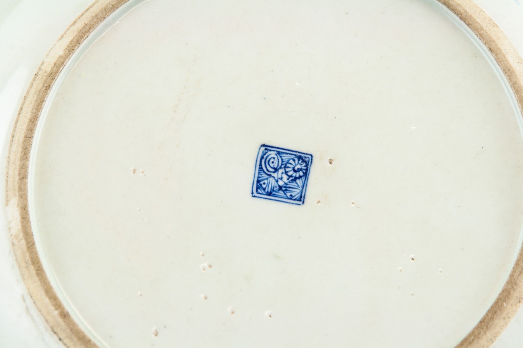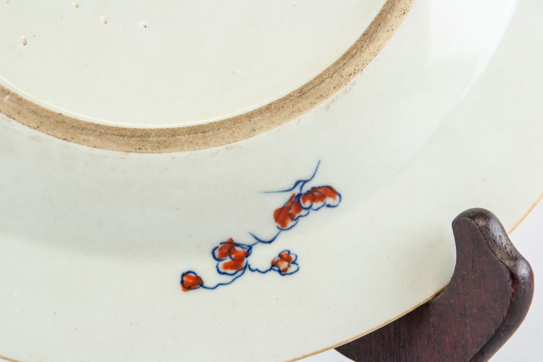 Chinese blue and copper red porcelain saucer, of rounded edge, tapering to bottom, supported on short foot rim, painted with flowers, mark on base, 2.5 x 23 cm, 416 grams