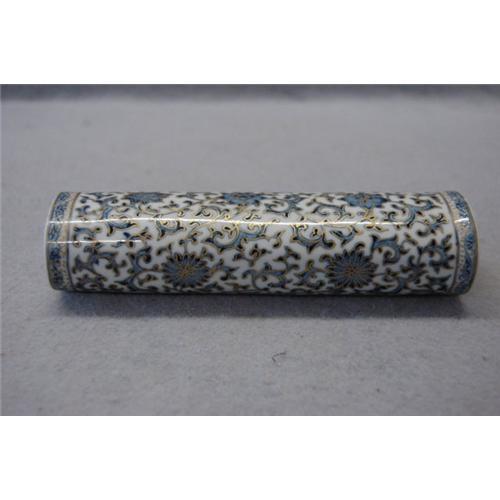 Chinese Blue and White Porcelain Paper Weight with gold trim.5.75" wide. good condition.