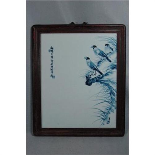 Chinese Blue and White Porcelain Plaque. Decorate with birds. Good condition. 21.5" x 18".
