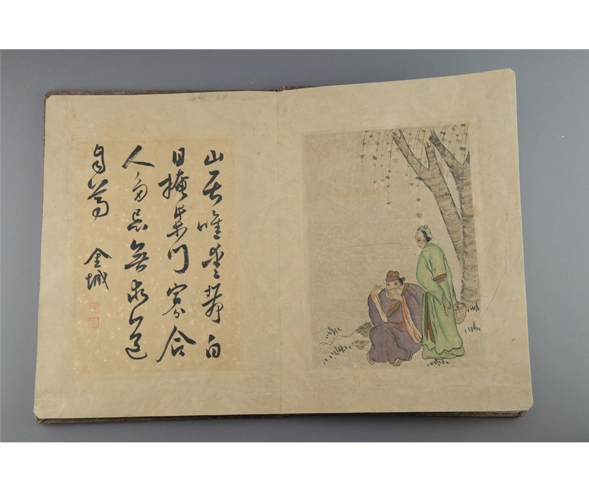 Study of figures, watercolour painting book, Chinese ink and watercolour on paper, signed and sealed Jin Cheng. 26 cm x 18 cm, total of 12 pages.