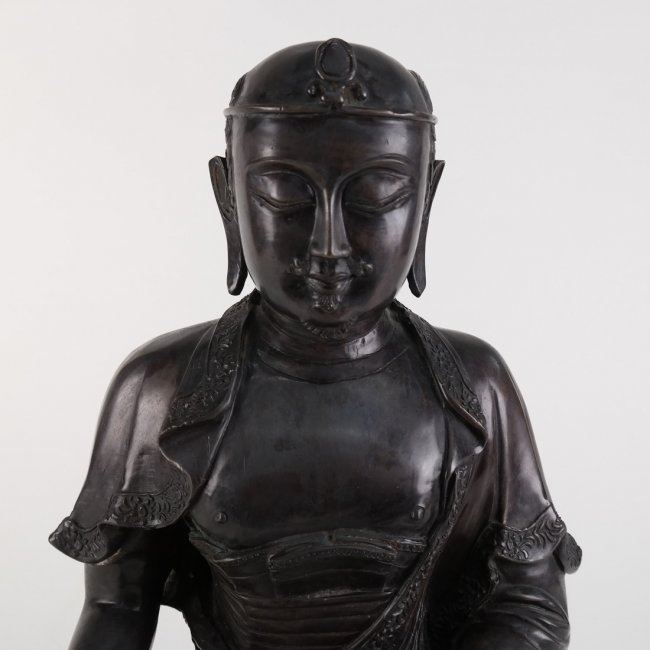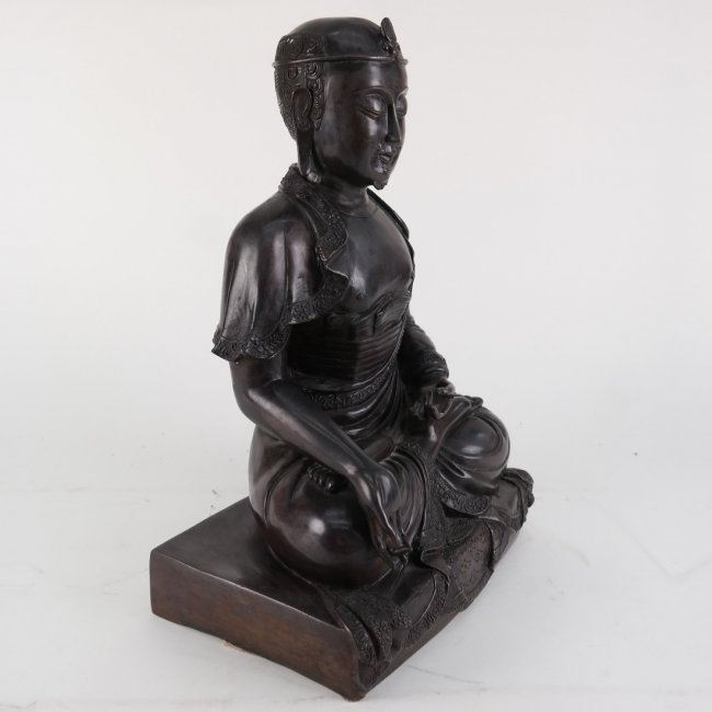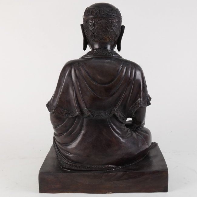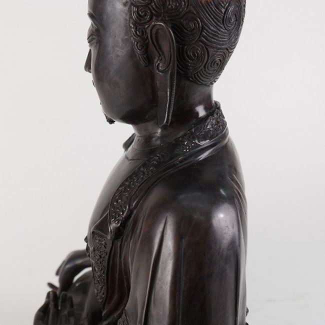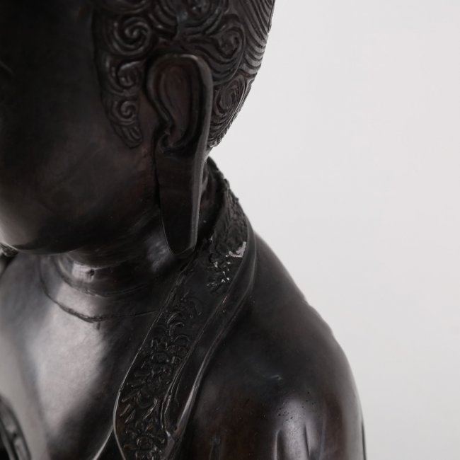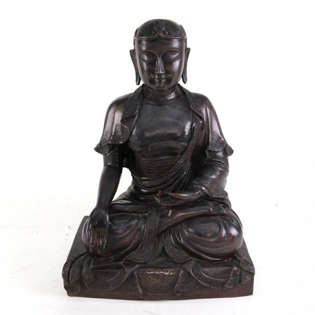Chinese bronze Buddha. [10 1/2" W x 6 1/2" D x 14 3/4" H]. In good condition.