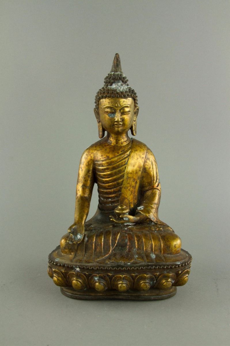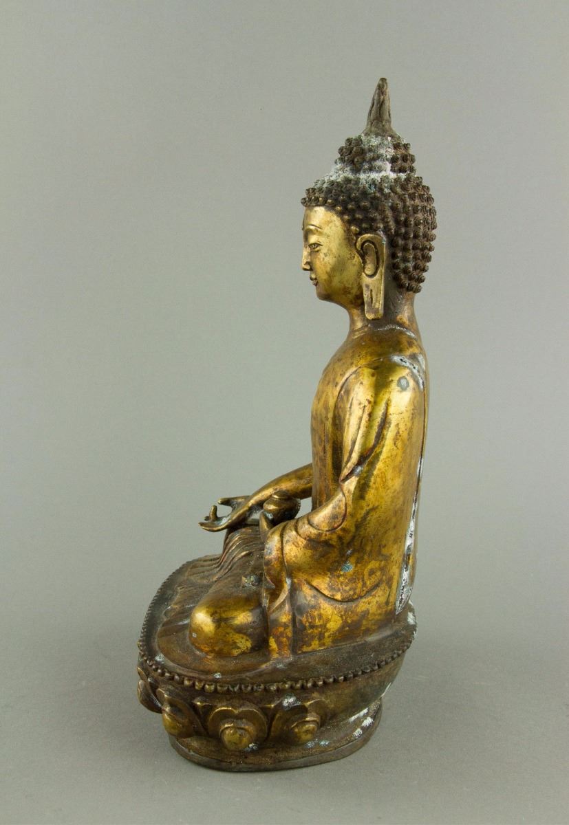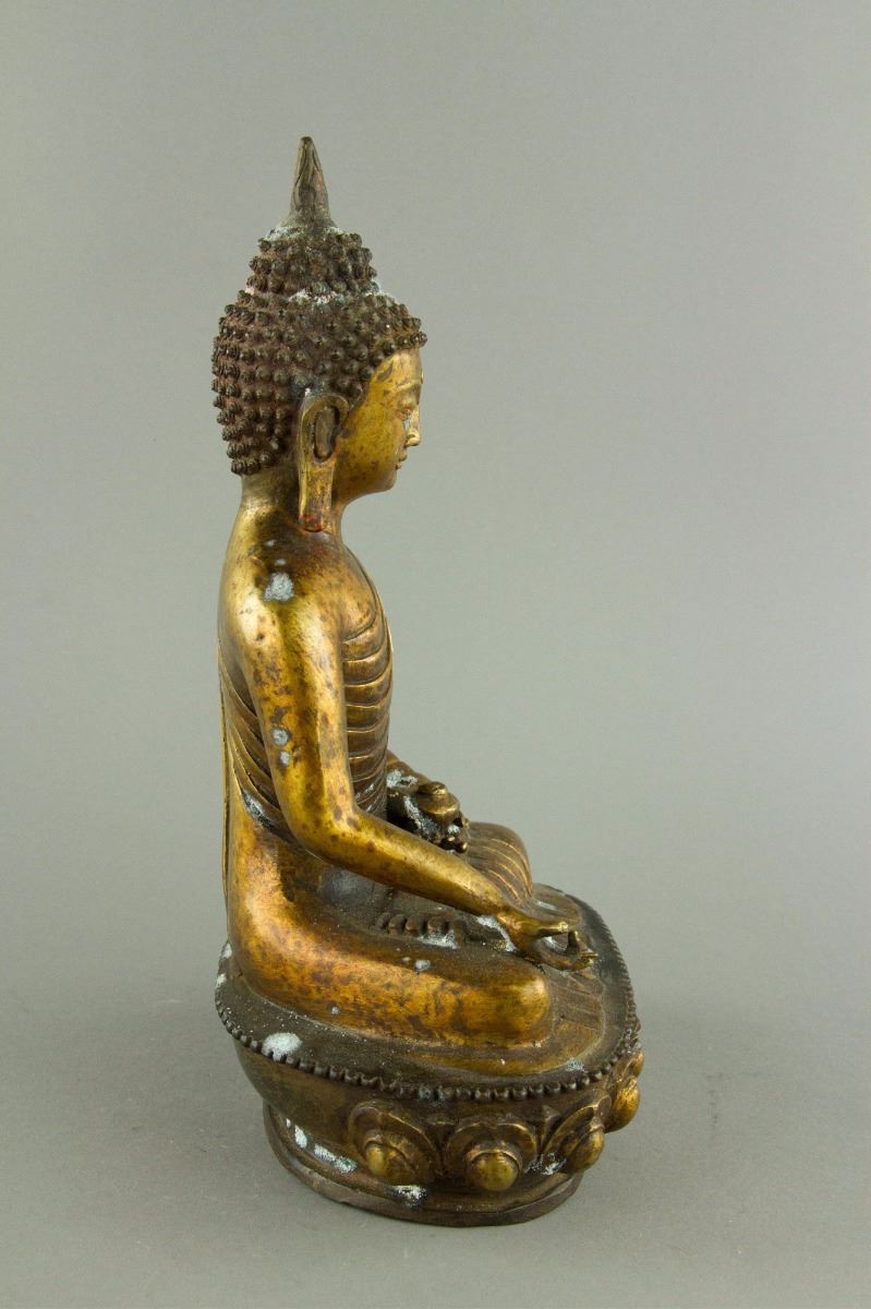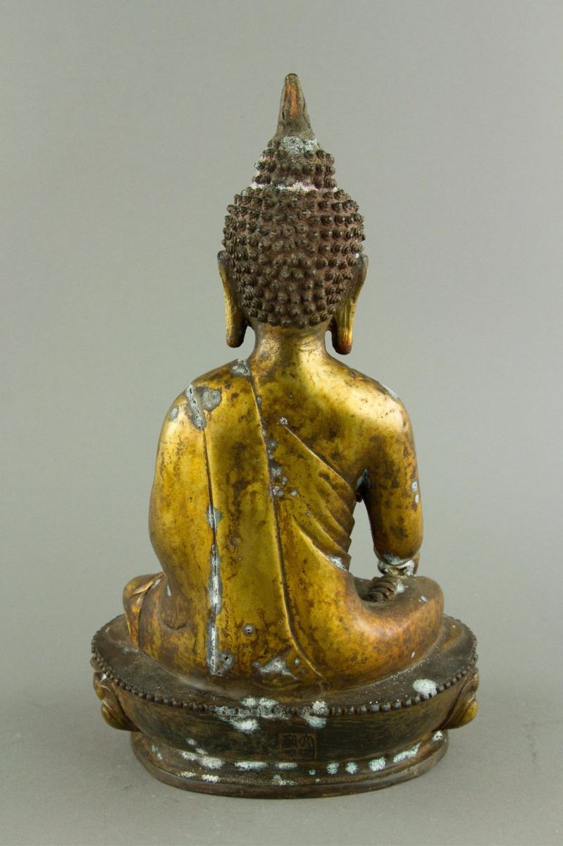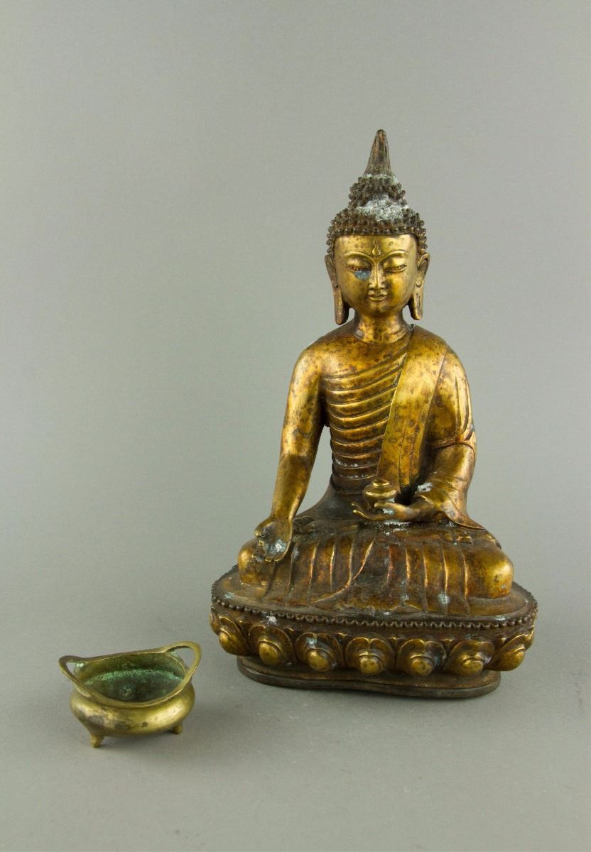 Two pieces of Chinese bronze Buddha figure and small bronze censer; the censer with six-character Xuande mark on base; H: 29 cm, D: 17 cm, 2465 grams