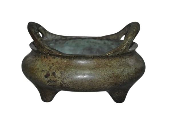 Chinese Bronze Incense Burner Censer.decorated with double handle. It was created by skilled craftsmen in traditional style with fine handcrafts. the handwork is very fine with incredible detailling. This is a great piece of valuable collection, a valuable personal alter or a very good present. Don't miss out this chance to get it .Good luck to you!L 13 cm + H 8 cmProvenance: A Private Collector Collection From "Palm Beach"