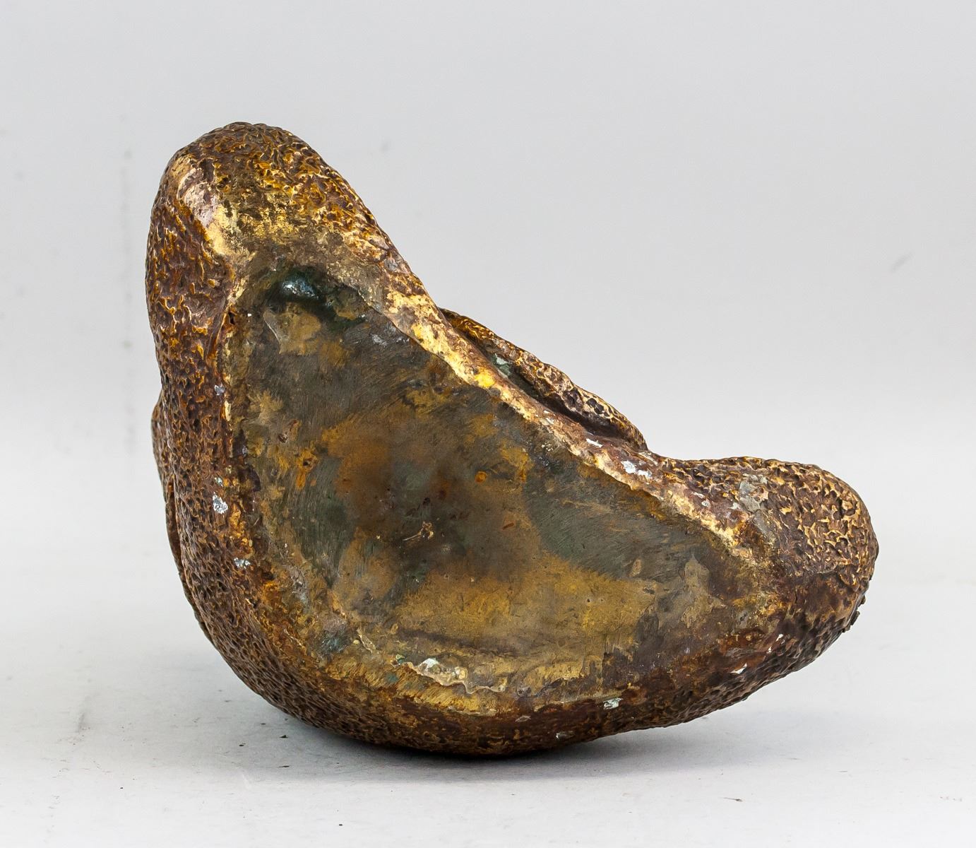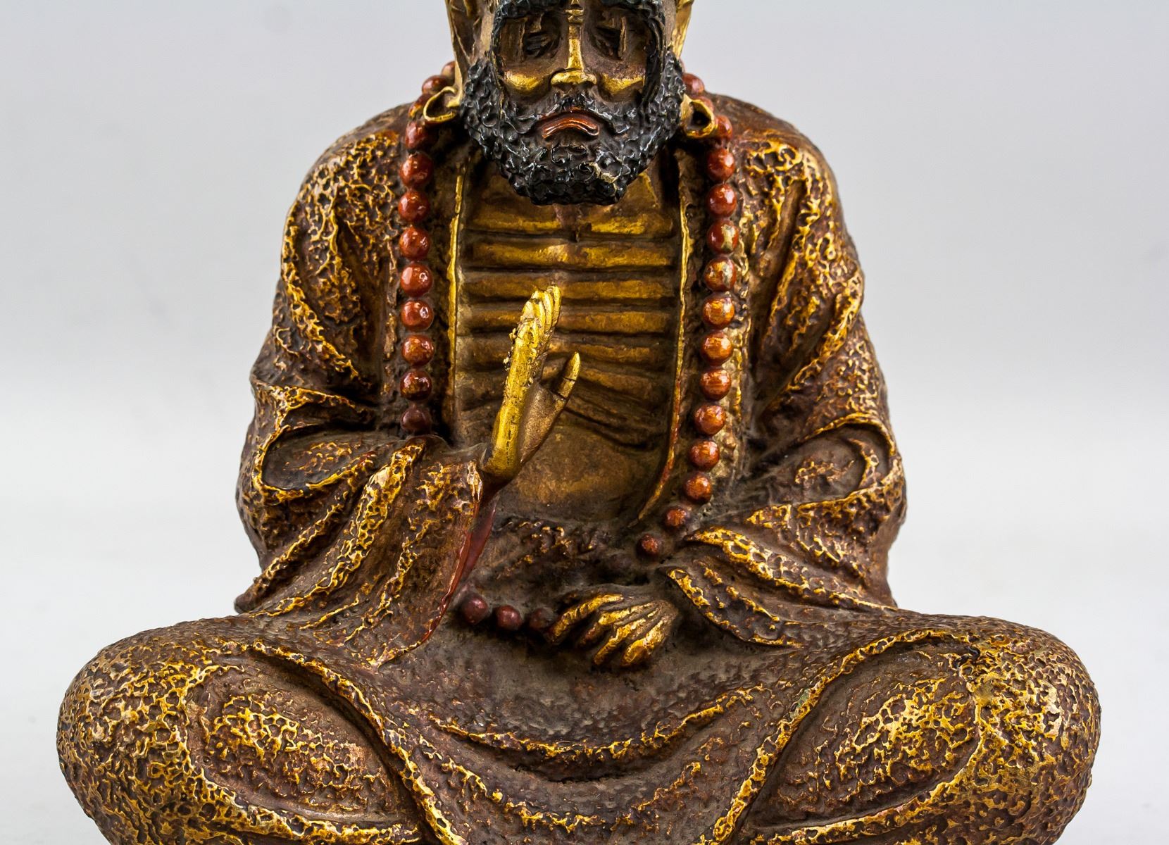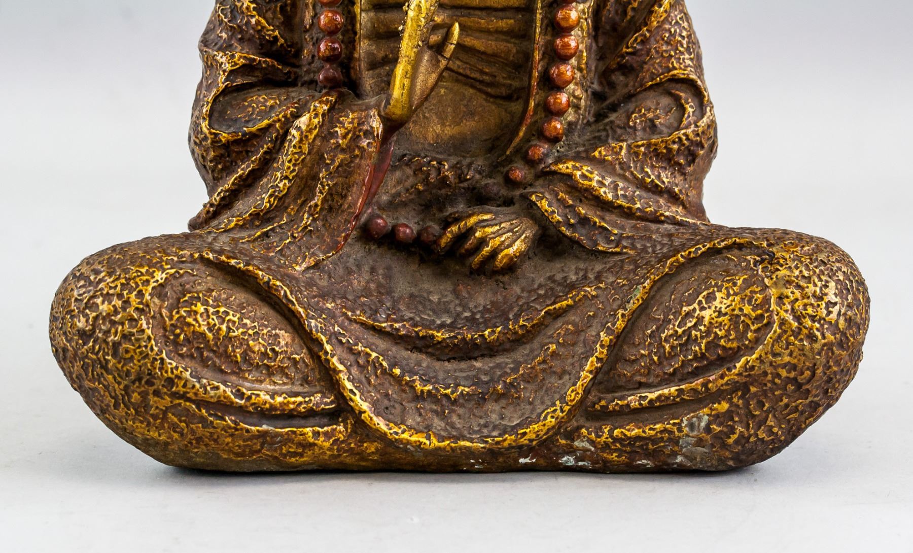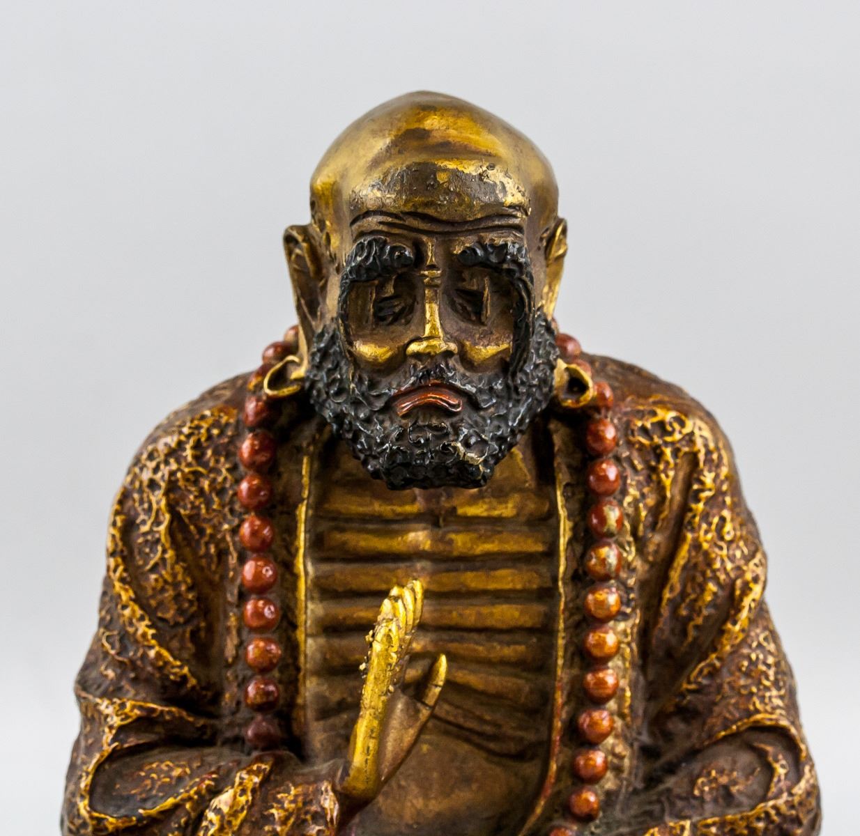 Chinese bronze statue. Featuring a seated Lohan. 19.5 x 19 cm, 2796 grams