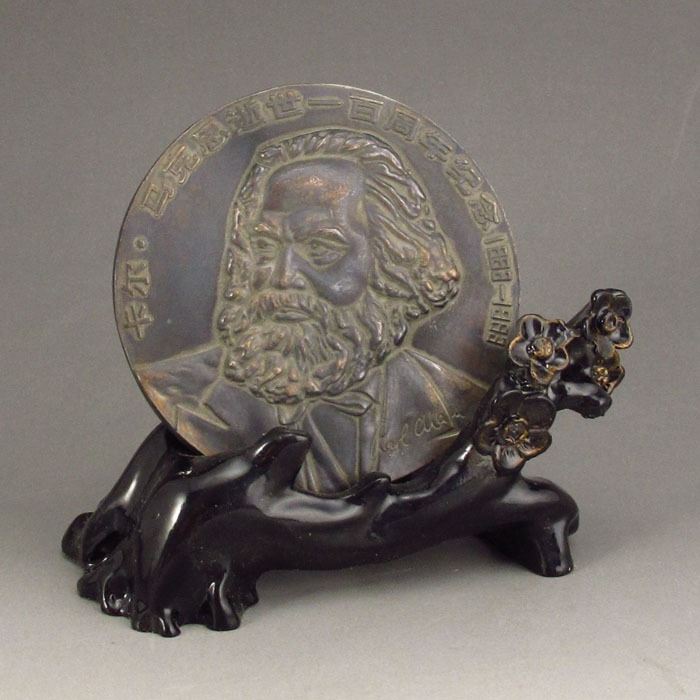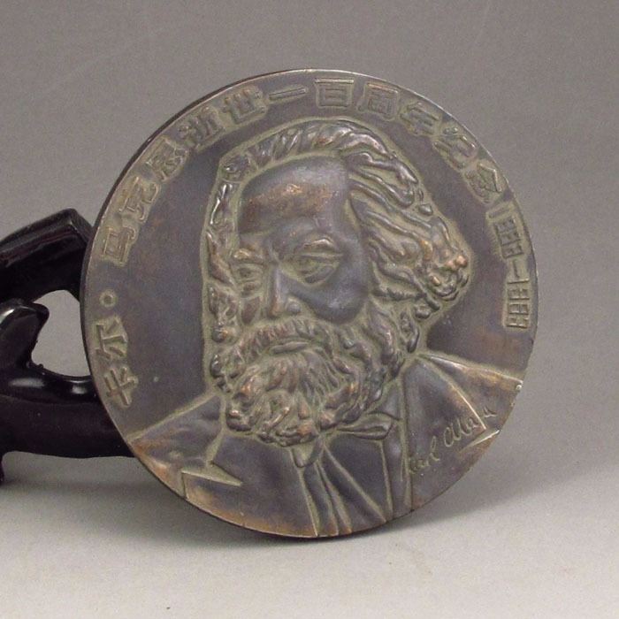 Chinese Bronze Marx Commemorative Coin Dimension: 79x79x8(mm) 3.11x3.11x0.31(inches) Weight 0.47 lbs/212 g The total weight does not include the base. The base is not included after you have won the auction.