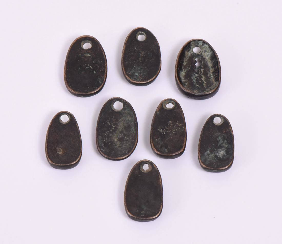 Chinese Bronze Shell Coin Currency. The specialized merchants and state run market emerged in the Westen Zhou Dynasty. Shells were used as medium for exchange of goods in the frequent commercial activities, and became the earliest coins and calculating unit in the transactions in Chinese history. Shell coins unearthed from tombs were mainly deep sea shells, as well as bronze and jade imitations of the period. At the end of the Shang Dynasty, northerners in China found it was hard to find enough shells from the south, so they used other materials like pottery, stone, bone, jade, bronze and gold to make shell-shaped money. The bronze shell shaped coins heralded the mintage of Chinese coin. Estimated more than 200 yrs old. (Pangaea Auctions) Size: See Ruler Photo. (Photos Represent The Condition Of The Lot.)