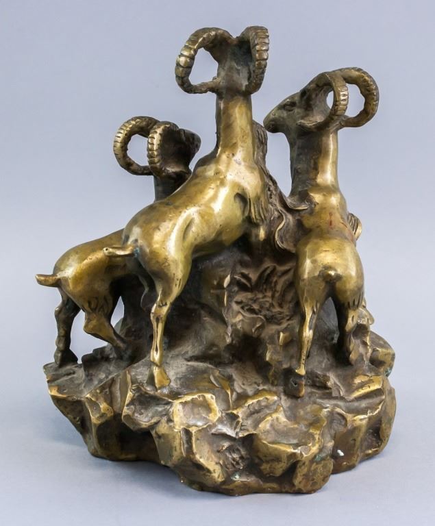 Chinese bronze statue. Featuring three rams. 21 x 17 cm. 2300 grams.
