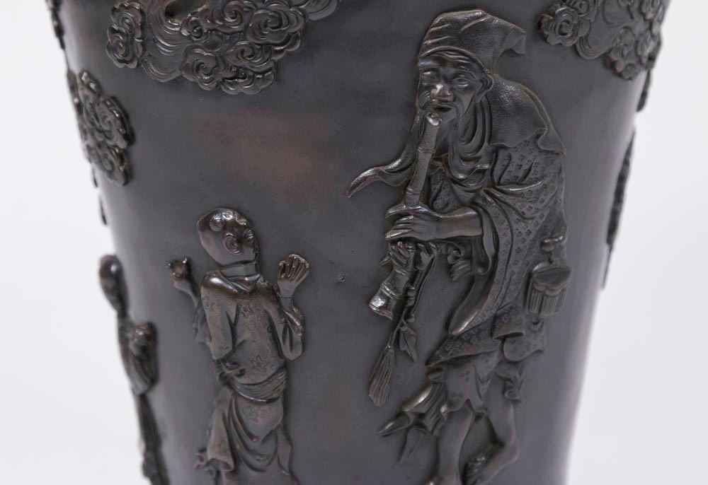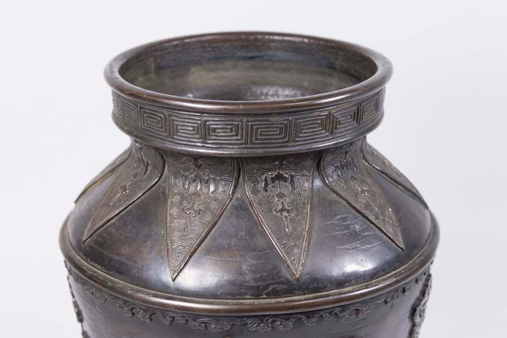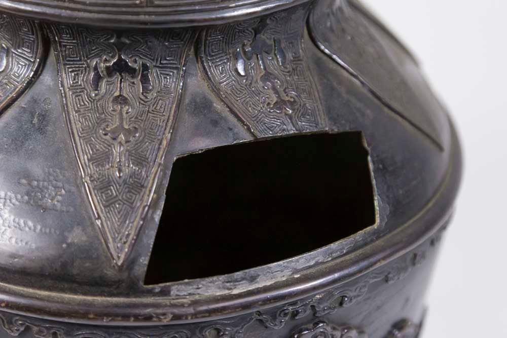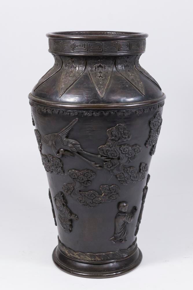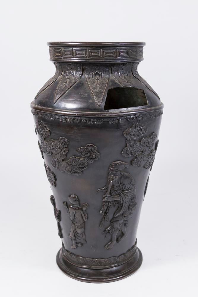 With figures and birds in landscapes. Approx. 13 3/4" H. Upper rim missing section. Foot patched.