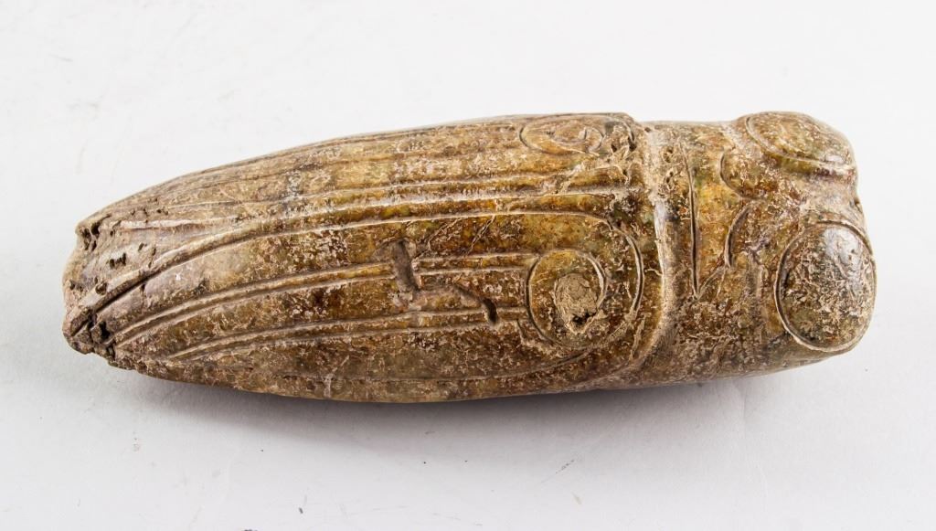 Chinese brown archaistic jade carved cicada, 9 x 22 cm, 2.3 kg