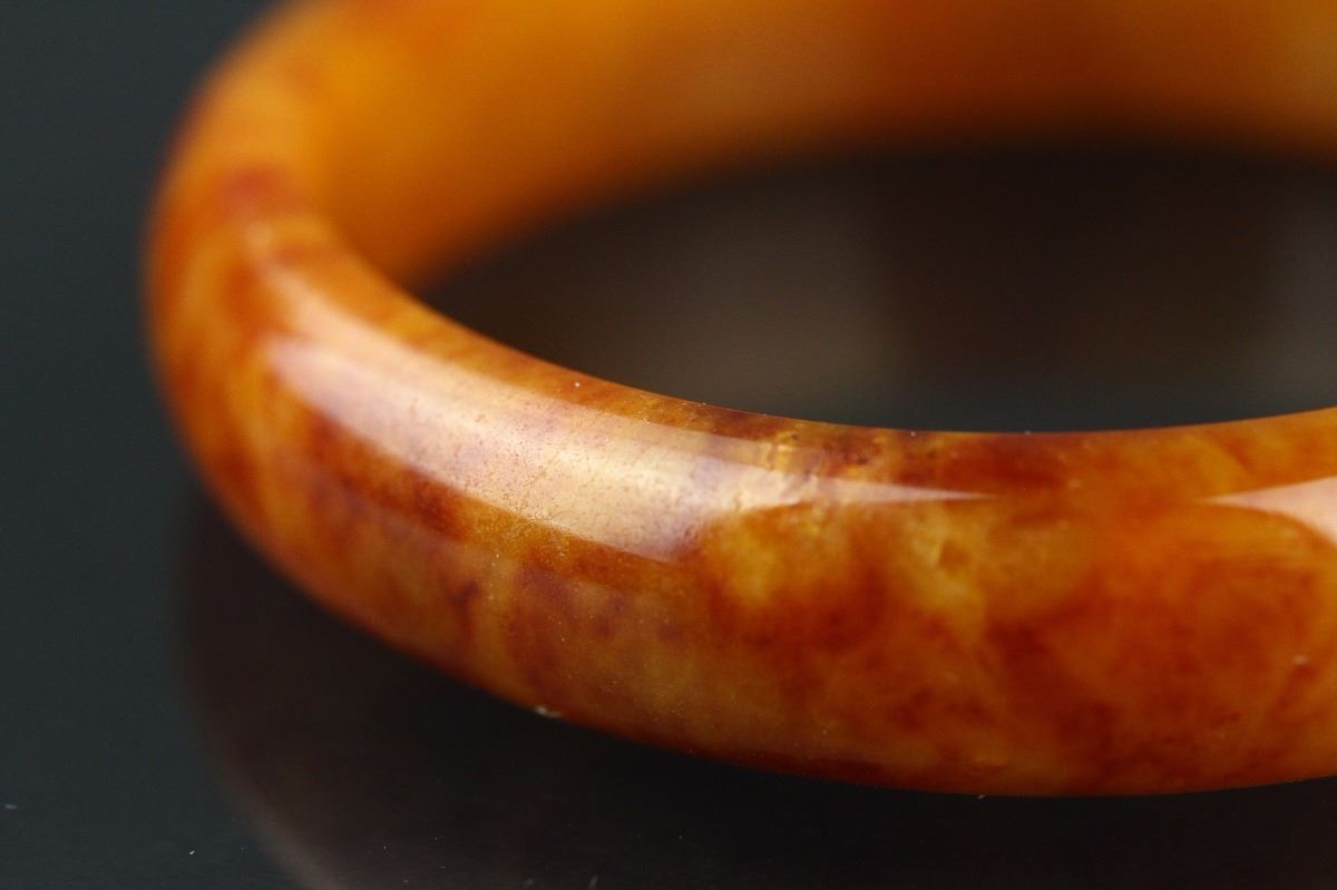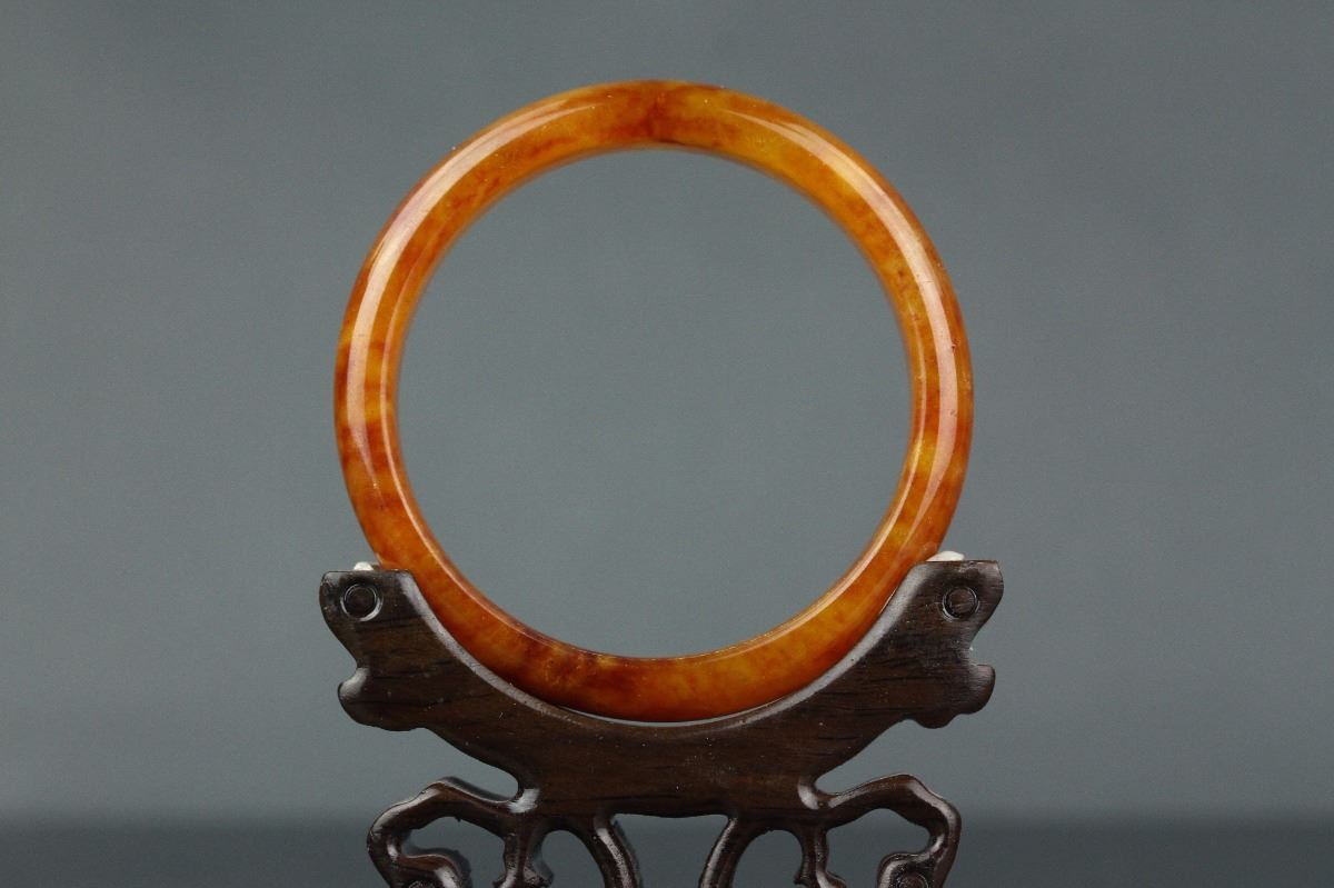 Chinese brown jade bangle; rounded outside and flatten inside; Inner D: 6 cm, 66 grams; Density: 3.17
