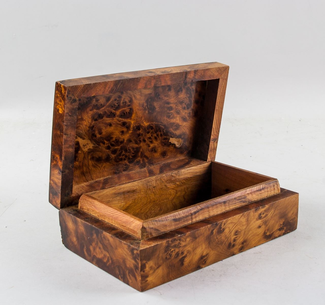 Chines burl wood carved box, of rectangle shape body, with hinged lid, 12 x 20 x 8 cm, 701 grams