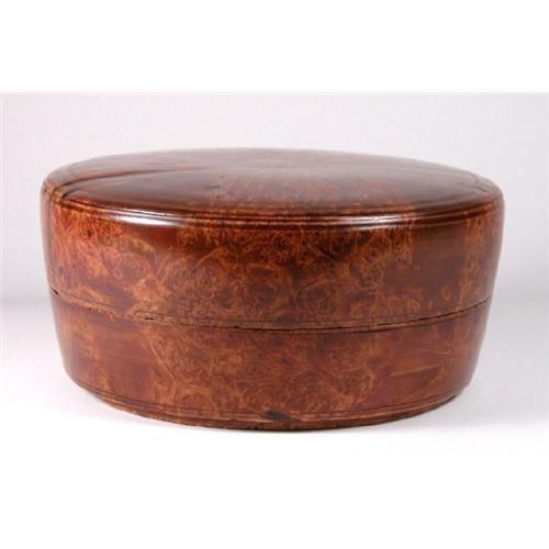 An unusal, oversized, circular, 19th century Burl wood (Huamu) box. Huamu, the Chinese for Burl wood, means flower wood because the beautiful grain looks like many flowers blooming together. It has an old cracked and few minor old retorations on the cover and bottom, a minor dent on the rim of the cover. Dimensions: Diameter 8 3/4 x Height 4 inch (Diameter 22 x Height 10 cm)