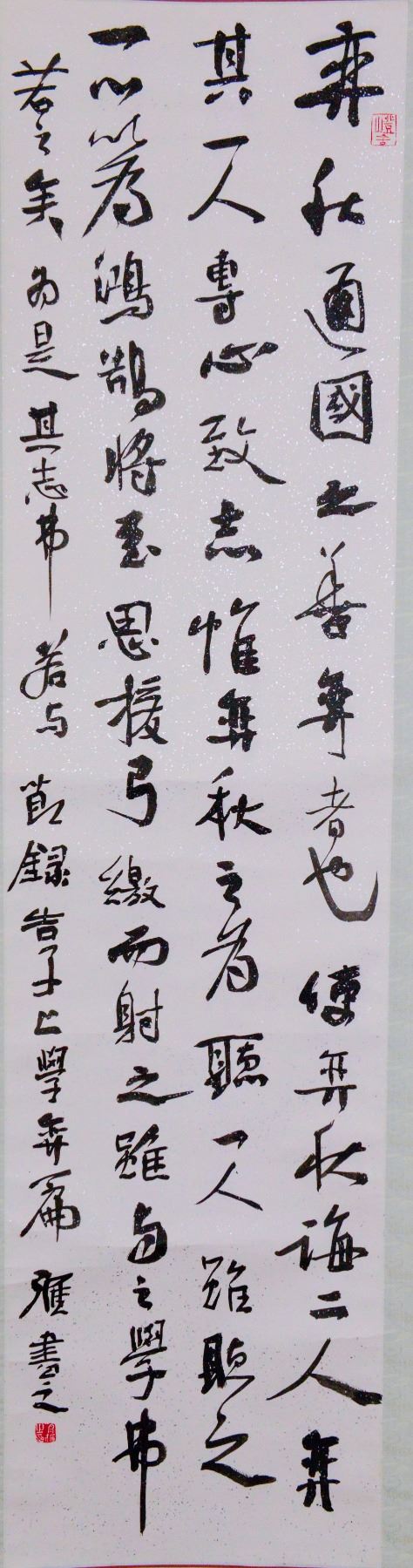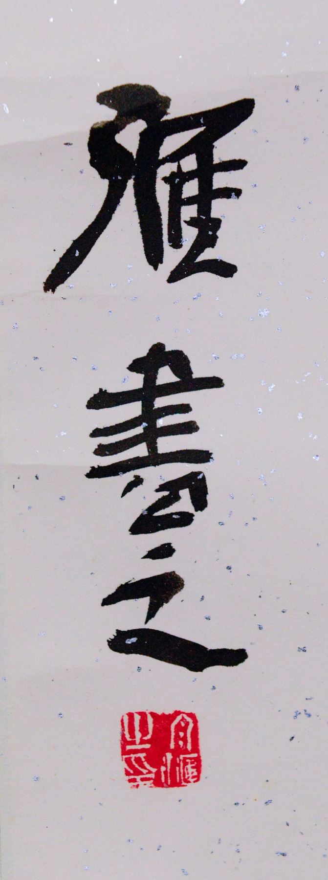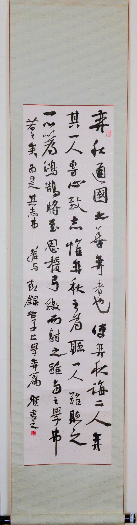 Ink on paper, hanging scroll. Featuring calligraphy. Signed by artist with two artist red seal. 185 x 42 cm
