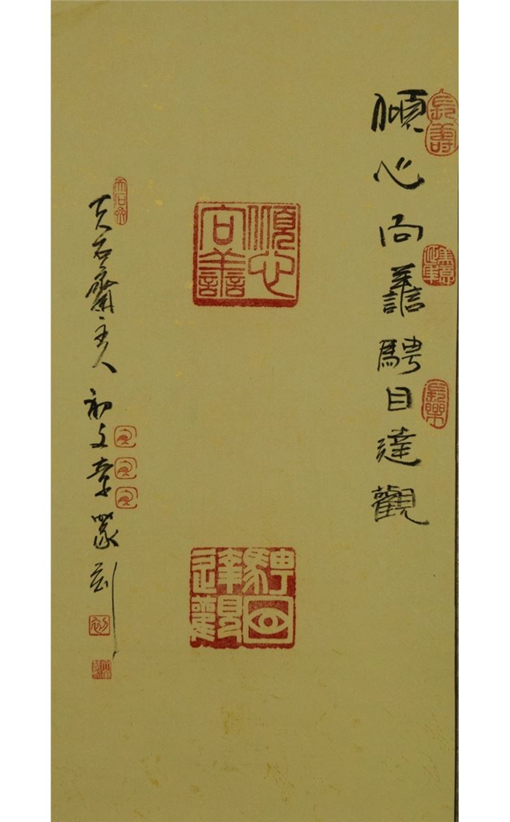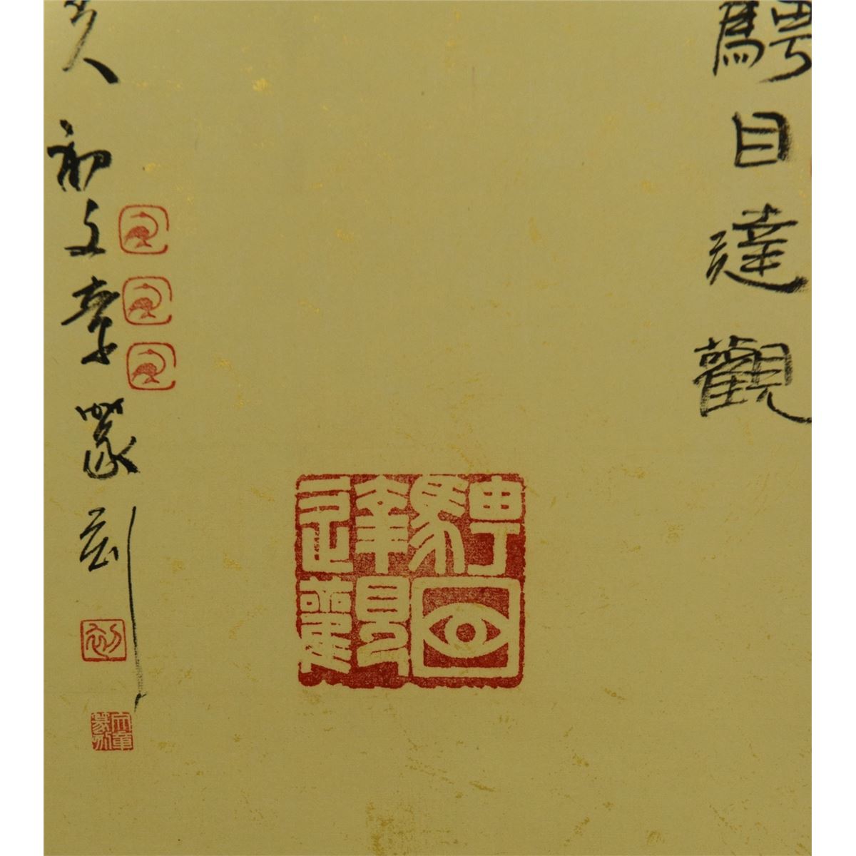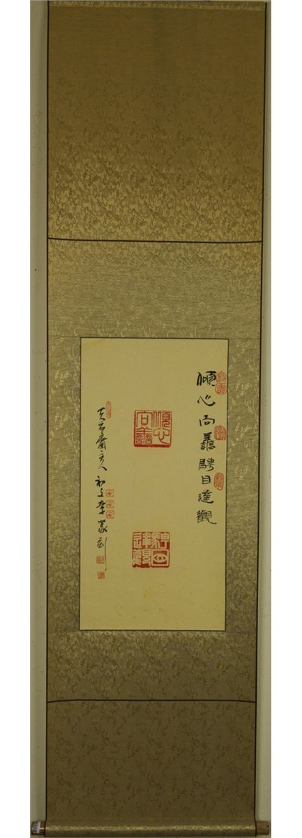 Chinese calligraphy, hanging scroll, Chinese ink on paper, signed with multiple seals. 61 cm x 31 cm.