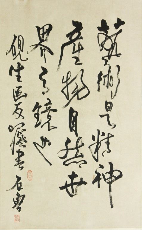 Calligraphy; Chinese ink on paper; signed Shi Yong and inscribed with two artist seals; 71 cm X 45 cm