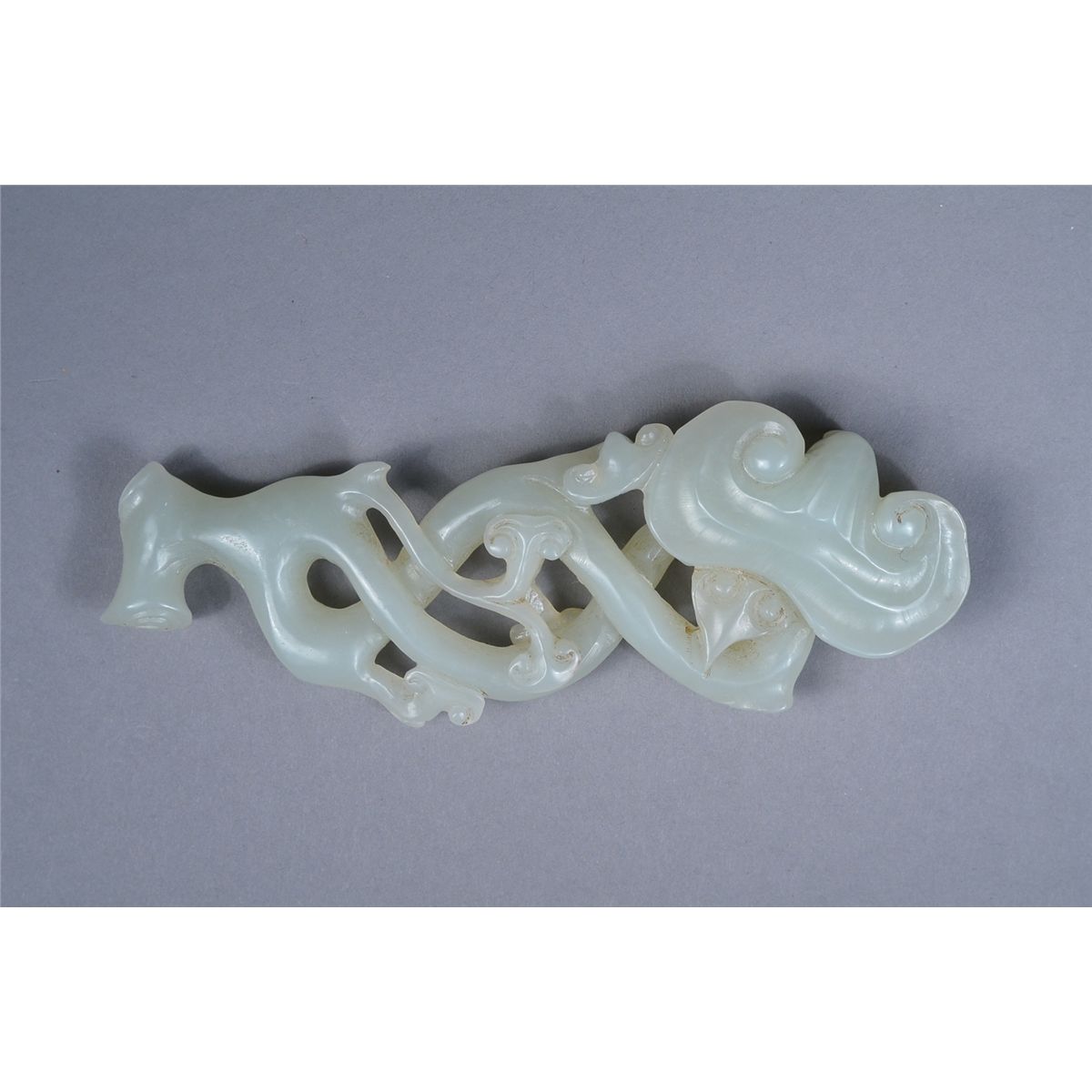Chinese carved celadon nephrite jade ruyi scepter; L: 34 cm, W: 12.5 cm, Thickness: 4.5 cm