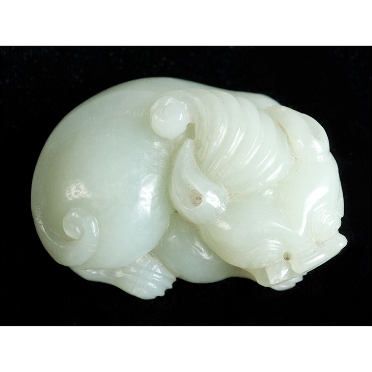 Finely carved to depict a reclining lion. 2 & 3/8" L, circa 20th century. Private collection Rochester Hills, MI.