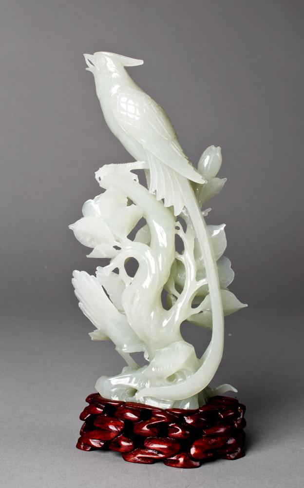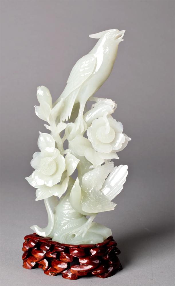 Depicting birds and flowers 7.25"H without stand 20th century.