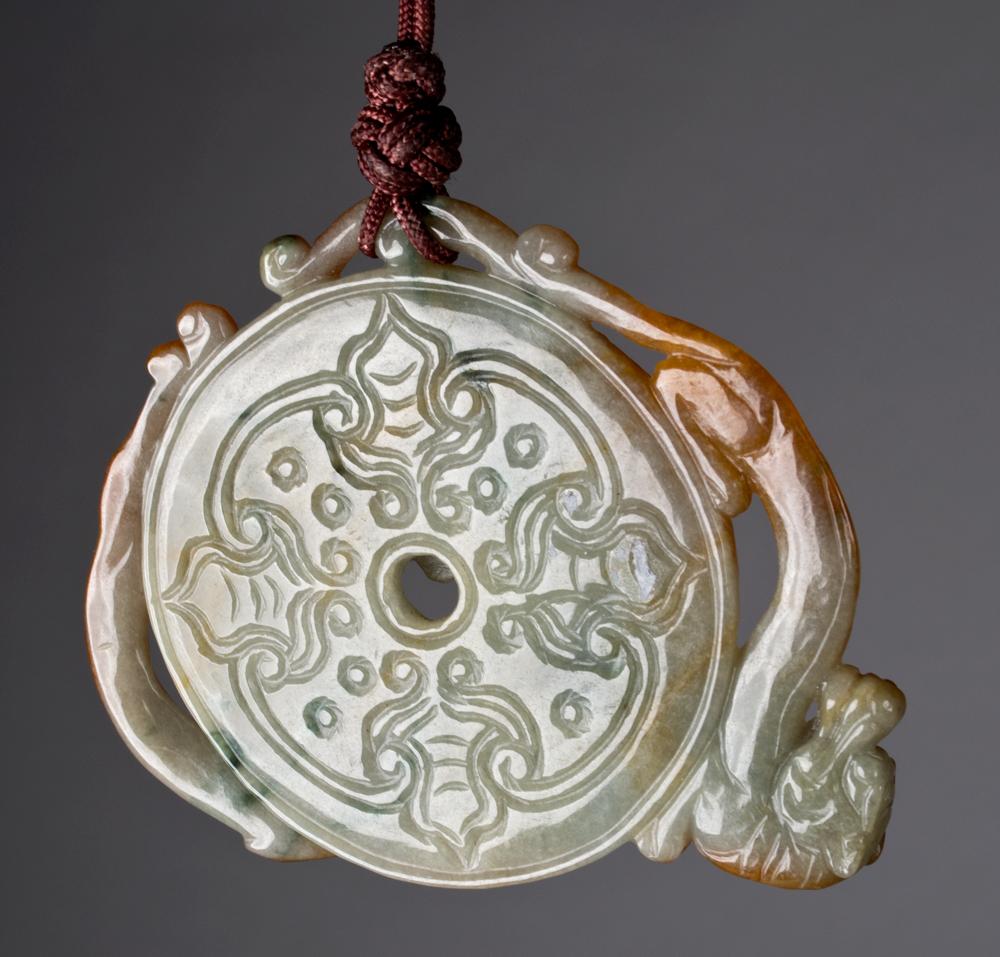 Depicting bats, dragons, and Lingzi 3.75"D. early 20th century.