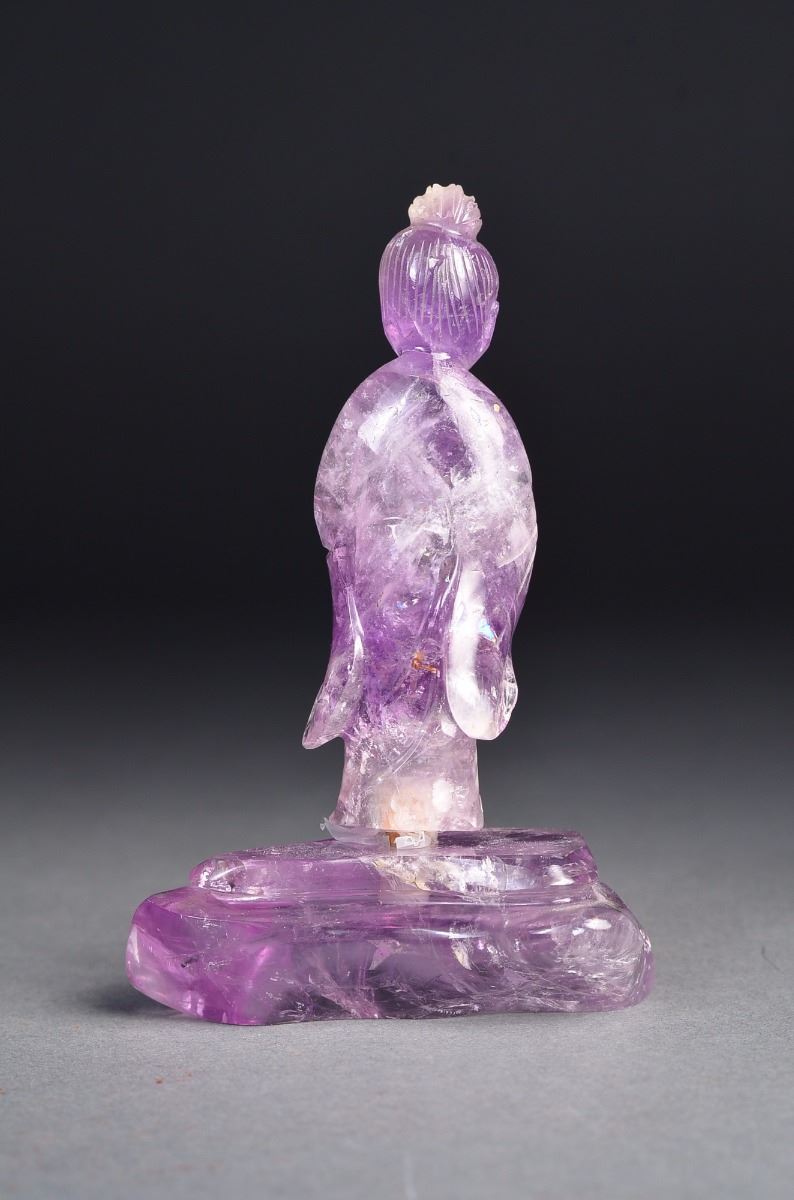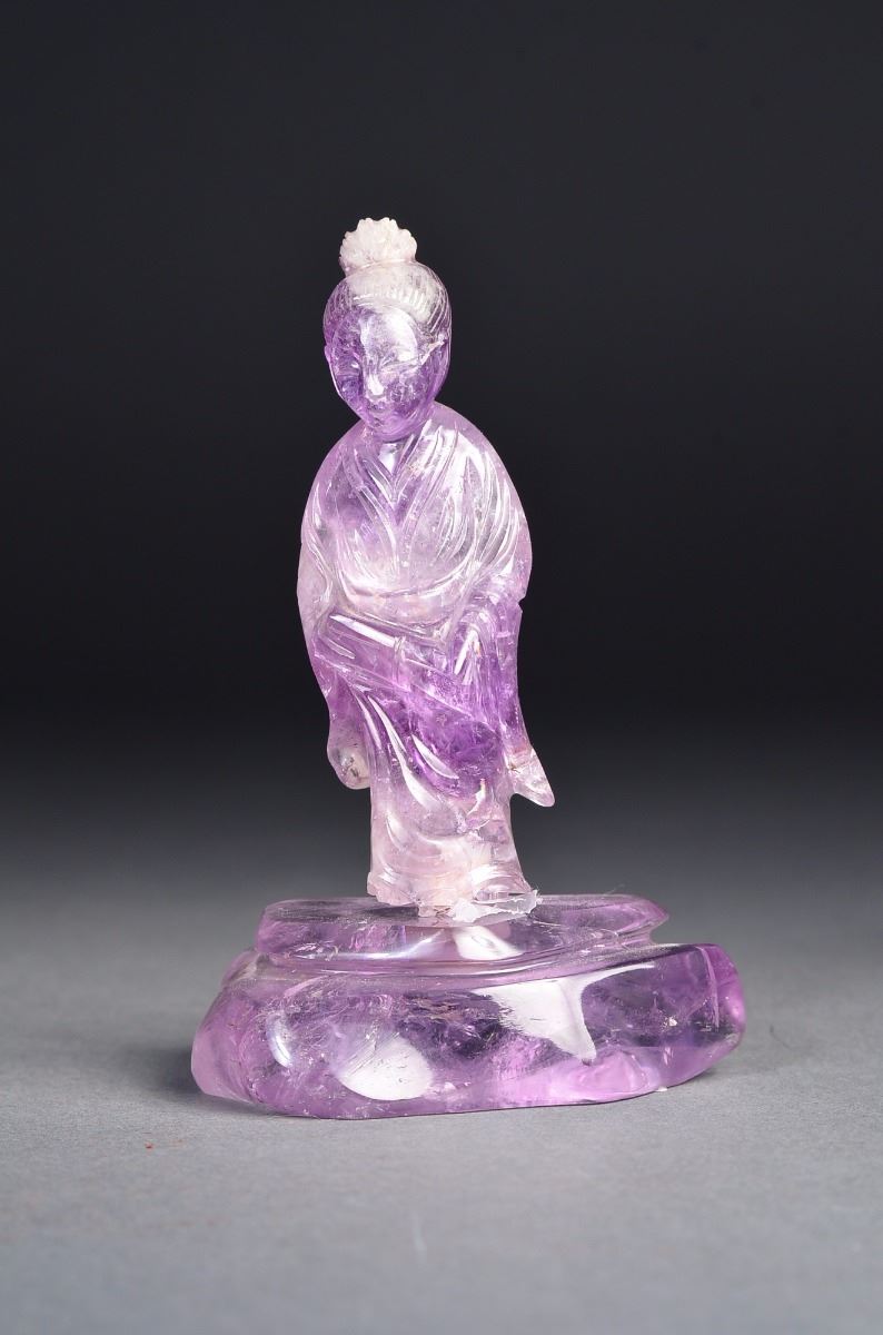 Charming Chinese carved rose quartz figure of Guanyin; H: 10 cm, 124 grams