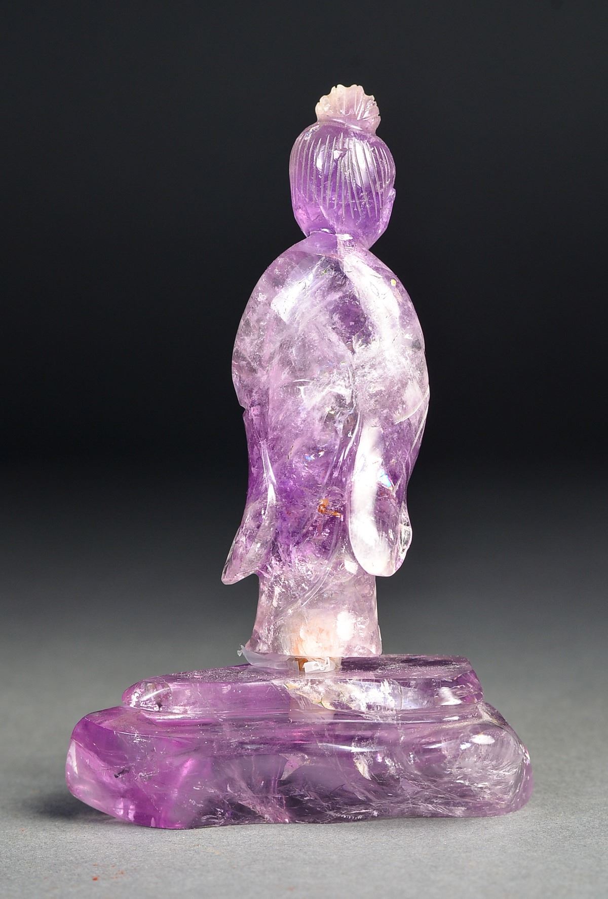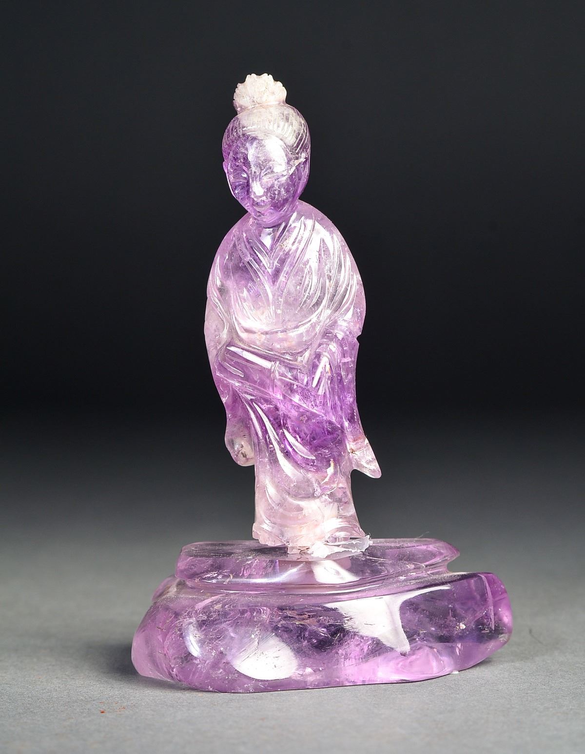 Charming Chinese carved rose quartz figure of Guanyin; H: 10 cm, 124 grams