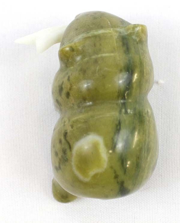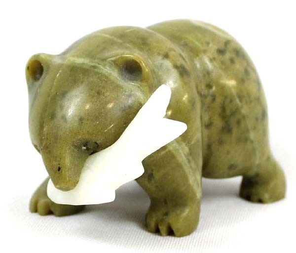 Chinese Carved Serpentine Bear Fetish with Mother of Pearl Fish, measures 2'' x 3''